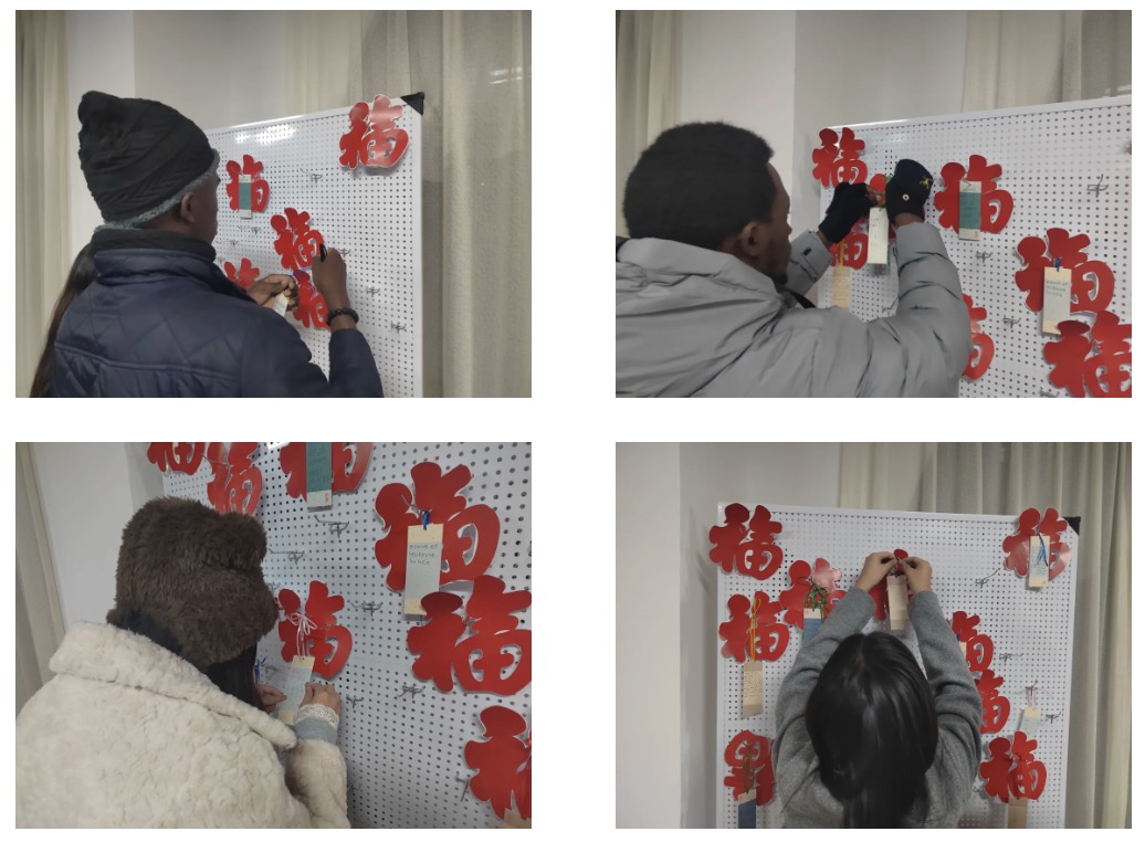 活动的尾声,学生们纷纷写下自己的新年心愿,并将心愿纸与剪的“福”字一起挂在心愿墙上。心愿卡上,有的写着对未来的憧憬,有的表达了对家人的思念,还有的寄托了对中国文化的热爱与向往。一张张心愿卡,承载着学生们的真挚情感,也展现了他们对生活的热爱与期待。