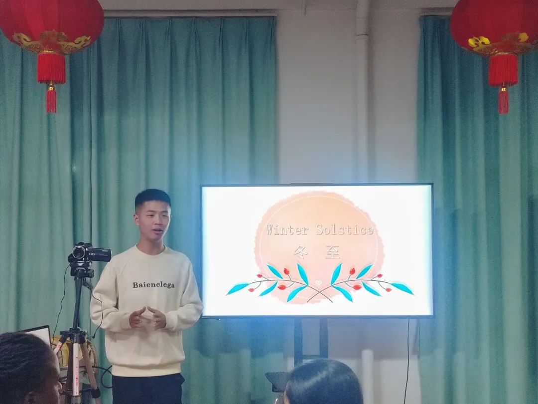 如诗冬日,国际中文教育学院/海外教育学院“汉语角”于12月21日在翔安校区国光二“一站式”学生社区暨中华传统文化体验室举办了一场以冬至节气为主题的特色活动。二十余名留学生齐聚一堂,共同探寻中国传统二十四节气之冬至的历史渊源、文化意义以及丰富多彩的民间习俗。