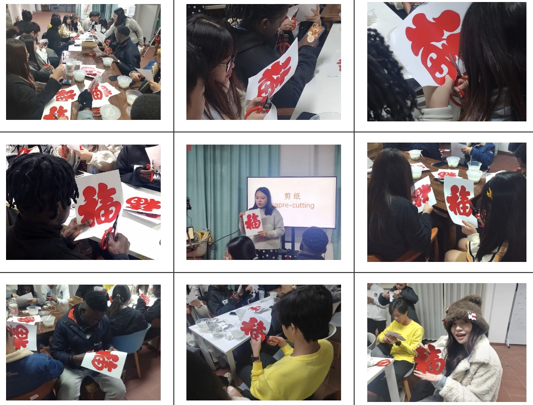 紧接着,活动进入剪“福”字环节。桌上铺满了红纸、剪刀和福字模板,学生们在指导老师的带领下,纷纷拿起剪刀,依照模板细心裁剪,开始剪制属于自己的福字作品。经过一番努力,一幅幅寓意吉祥的福字作品呈现在大家眼前。这些福字不仅展示了学生们的动手能力,更寄托了他们对新年的美好祝愿。
