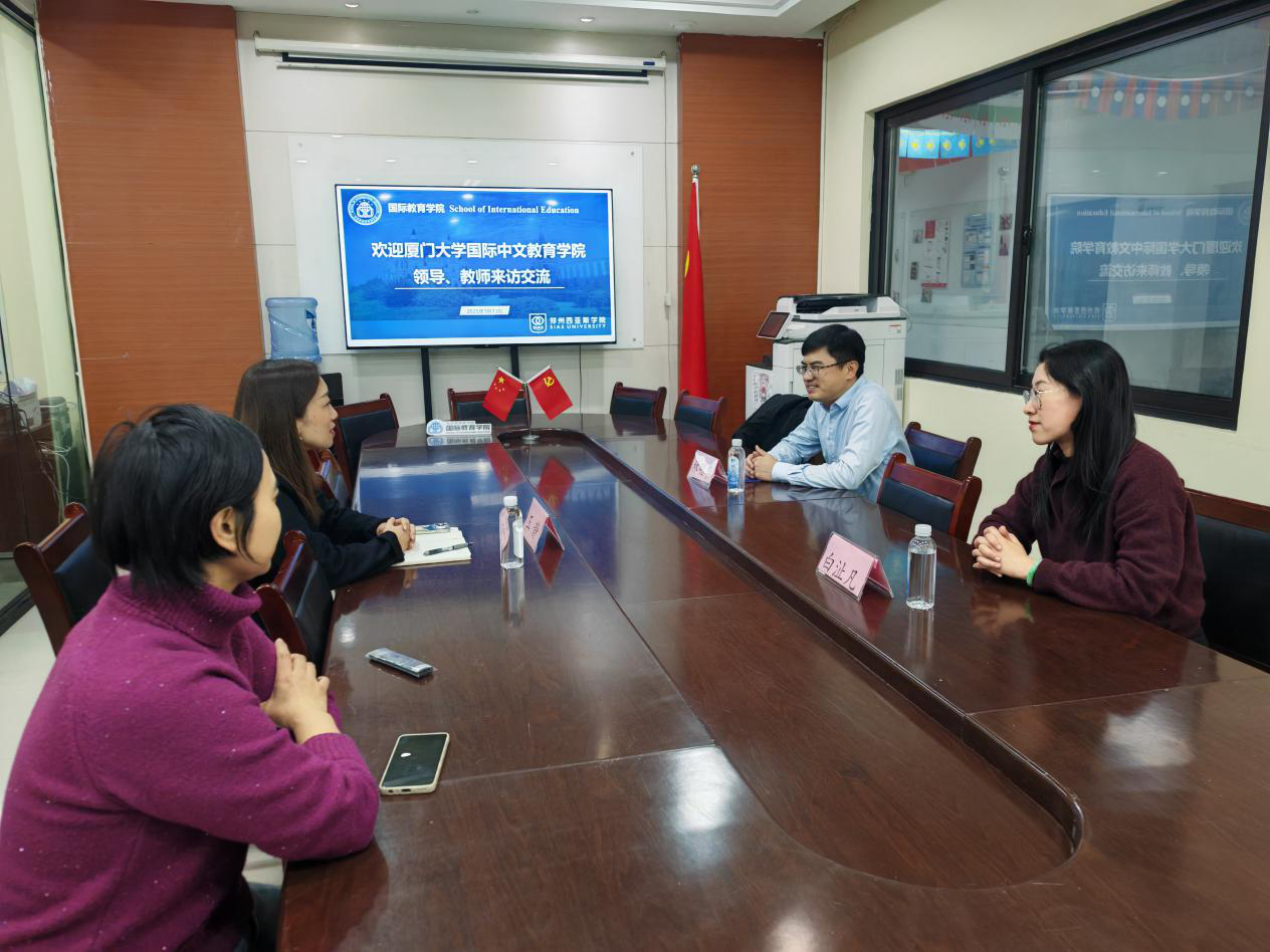在豫期间,林明华一行赴郑州西亚斯学院访企拓岗并看望校友。郑州西亚斯学院国际教育学院院长王静,学院教师、我校校友宁晨、杨妍等参加交流会。王静院长对林明华一行表示欢迎,并详细介绍了学校和国际教育学院发展历程、专业设置、师生规模等基本情况,双方就留学生招生、日常管理、文化活动等具体工作进行了深入交流。林明华表示,郑州西亚斯学院特色鲜明,环境优美,办学条件突出,国际教育学院与我院专业契合,我校两位优秀校友在西亚斯学院发展良好,希望未来可以推荐更多优秀学子,特别是河南籍毕业生加盟郑州西亚斯学院。