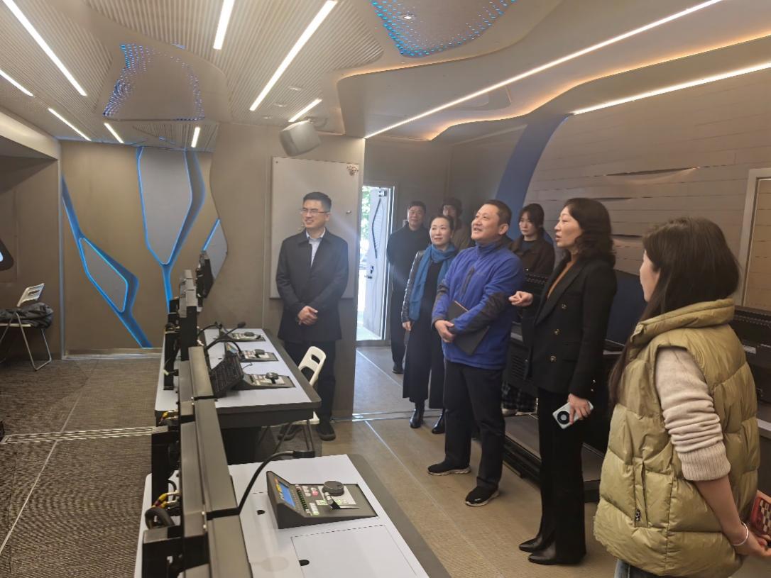 学院一行首先与福建省广播影视集团科技文体传媒中心主任林强、党总支书记、副主任魏莉、福建电视台文体频道副总监、高级编辑商建汤等座谈,就学院与福建省广播影视集团科技文体传媒中心如何进一步加强实习实践基地合作展开深入探讨。随后参访团参观了福建省广播影视集团4K超高清转播车、省政府新闻发布厅、沉浸式超高清视频体验馆、集团展示馆、全媒体演播室和融媒体指挥中心,近距离感受我国传媒事业近年来的转型与蓬勃发展。