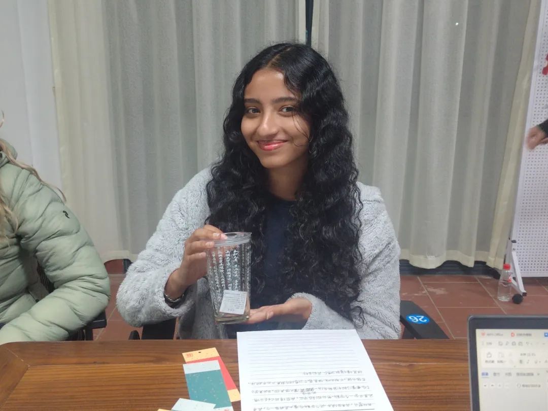 活动过程中,大家互相提问并解答,现场气氛热烈。在交流时,活动组织同学也积极帮助纠正国际学生的口语失误,并肯定了同学们口语水平的进步。为了激发大家交流的热情,活动设置了特别奖励,获得书签最多的参与者可以赢得一个精美的水杯作为奖品。