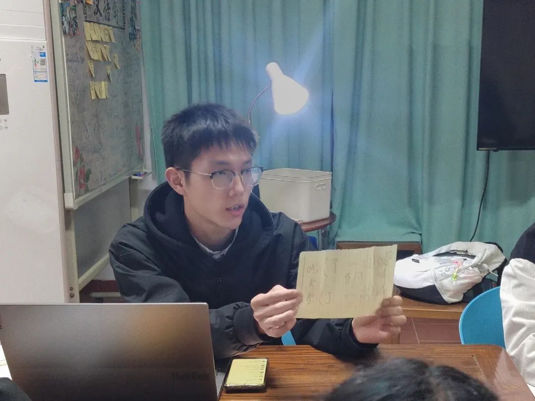 活动伊始,国风文化社的工作人员为每位同学发放一张白纸,大家需在纸上写下一个能概括自己开学以来近期生活或学习状态的词语。主持人国风文化社社员王帅率先分享,他以“兴奋”一词表达了开学重逢老师和同学的喜悦,以及对新学期计划与挑战的期待。