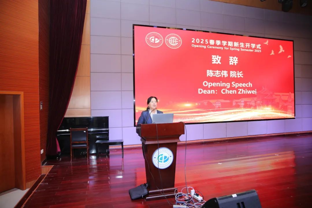 院长陈志伟代表学院全体师生向新同学致以热烈欢迎。她回顾了厦门大学百年办学历程和海外教育学院的办学历史。她提到,本届新生来自20余个国家和地区,多元文化背景为校园增添了独特活力。她勉励同学们珍惜学习机会,积极参与实践,既要“读万卷书”精进汉语,也要“行万里路”体验中国文化,成为中外文明交流的桥梁。