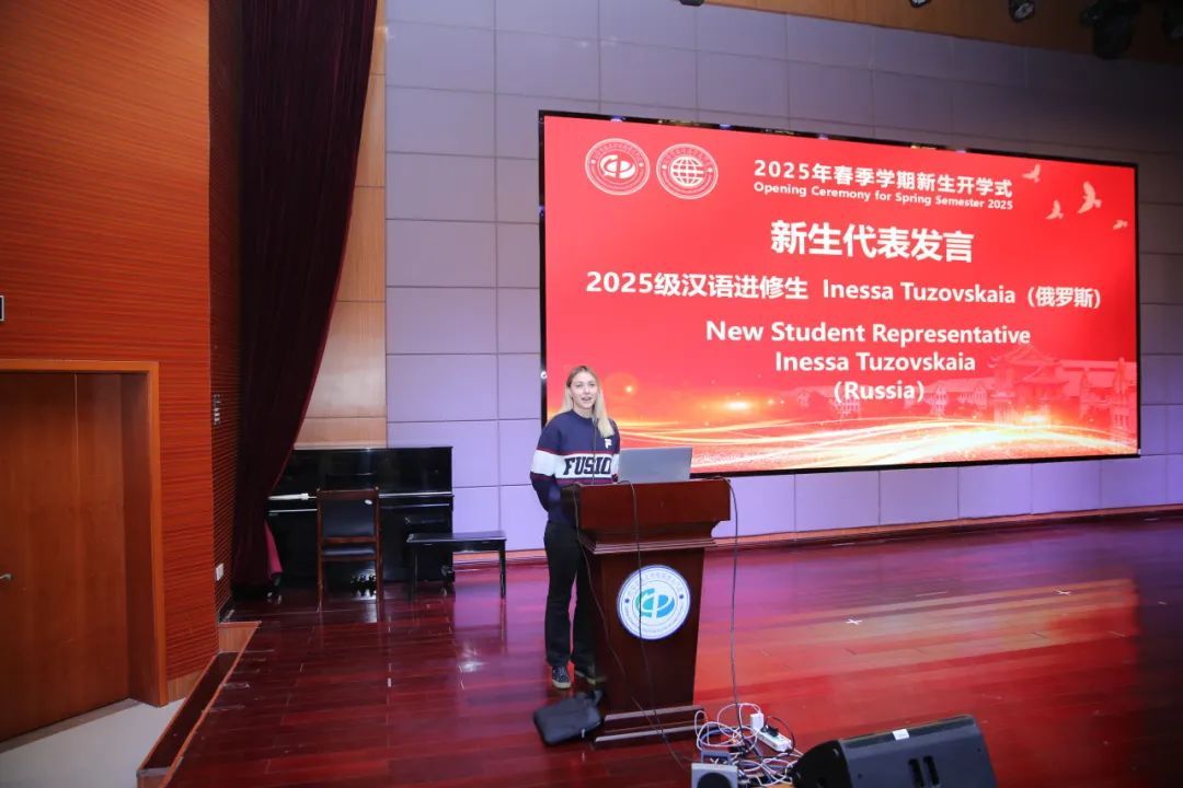来自泰国皇太后大学的交流生金素玲和来自俄罗斯的语言生Inessa Tuzovskaia作为新生代表,表达了对此次学习机会的期待,不仅要努力提升汉语水平,更要深入了解中国。