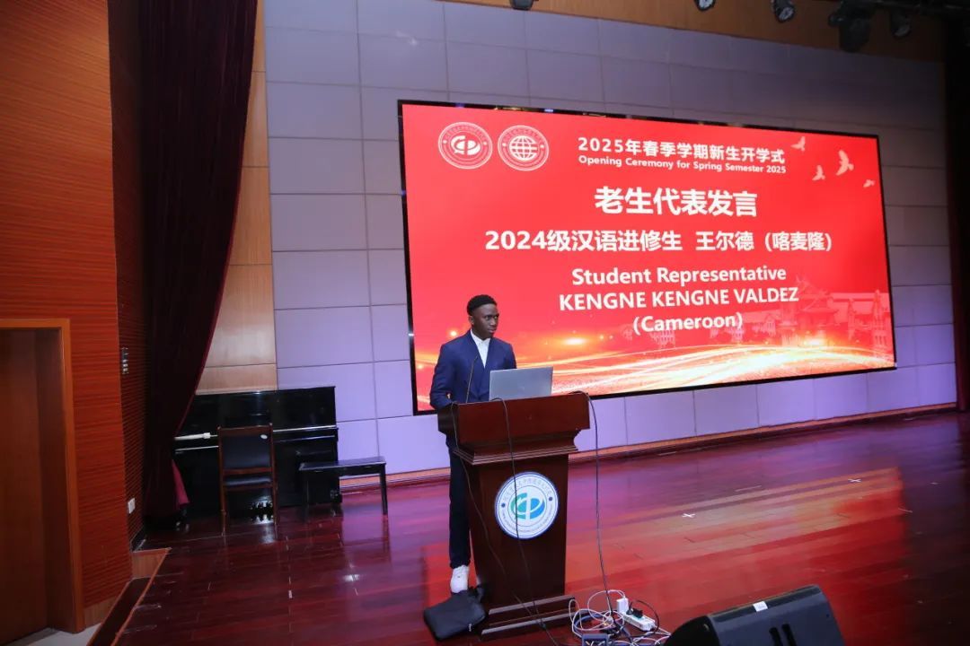 来自喀麦隆的汉语进修生王尔德作为老生代表,分享了半年来在厦大的学习体验。他提到,学院丰富的文化活动以及老师们的悉心指导,让他的汉语水平快速提升。他还鼓励新生多参与校园活动,要“在凤凰花开的路上书写自己的故事”。
