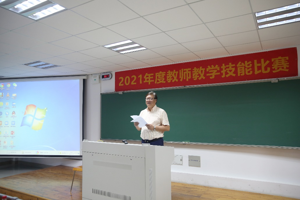 教师教学技能比赛开幕式上,毛通文主任上台致辞。他首先代表学院党政领导班子对比赛的举办表示热烈祝贺,对学院工会工作人员及莅临本次比赛的评委表示感谢。随后,对所有参赛教师提出了几点希望:一、要深刻认识教师职业的重要意义。二、要深刻认识教学工作的重要性。作为一名教师,要把“责任担子”扛到肩上,不仅将精力投入科研工作,也要重视教学工作,努力提升教学水平。三、要与时俱进,创新线上线下教学模式。进一步探索线上线下教学模式的创新融合,充分发挥聪明才智。四、要相互学习、互相借鉴。最后,他希望每位教师都能立足事业发展新起点,心怀“国之大者”,把握大势,敢于担当,善于作为,将提升教学水平转化成推动学院教学高质量发展的动力和源泉,以一流的教学向建党100周年和建校100周年献礼。
