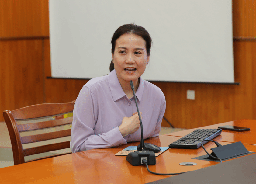 梁宇以“如何进行教学设计提高教学质量及效率”为主题结合自身教学实践和例子进行深入的分析,分享了自己的教学经验和感悟。她着重强调了三点关键内容:一是课堂素材应具有真实性,教师要把自己亲身经历融入到教学内容和理念中;二是根据留学生语言水平,筛选并提供一些新颖、正面且积极的素材,以提升学生的兴趣性和互动性;三是在语言教学中如何将语言点与思政点潜移默化地融合,使学生更深层次的了解中国文化内涵。最后,她还对教师的教学反思、PPT课件制作的注意事项等方面做了几点建议。