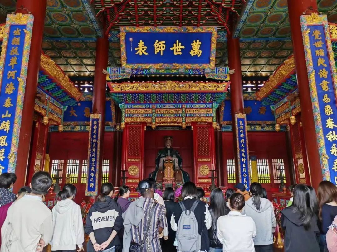 师生一行在讲解员的带领下参观了长泰文庙。文庙内古木参天,建筑古朴典雅,处处彰显着中华传统文化的深厚底蕴。文庙的主体建筑大成殿,供奉着孔子像,殿内陈列着古代学子的祭器、礼器等文物,展现了古代科举文化的繁荣景象。通过讲解员的详细介绍,同学们对长泰文庙的历史背景、建筑风格以及文化内涵有了更深入的了解。