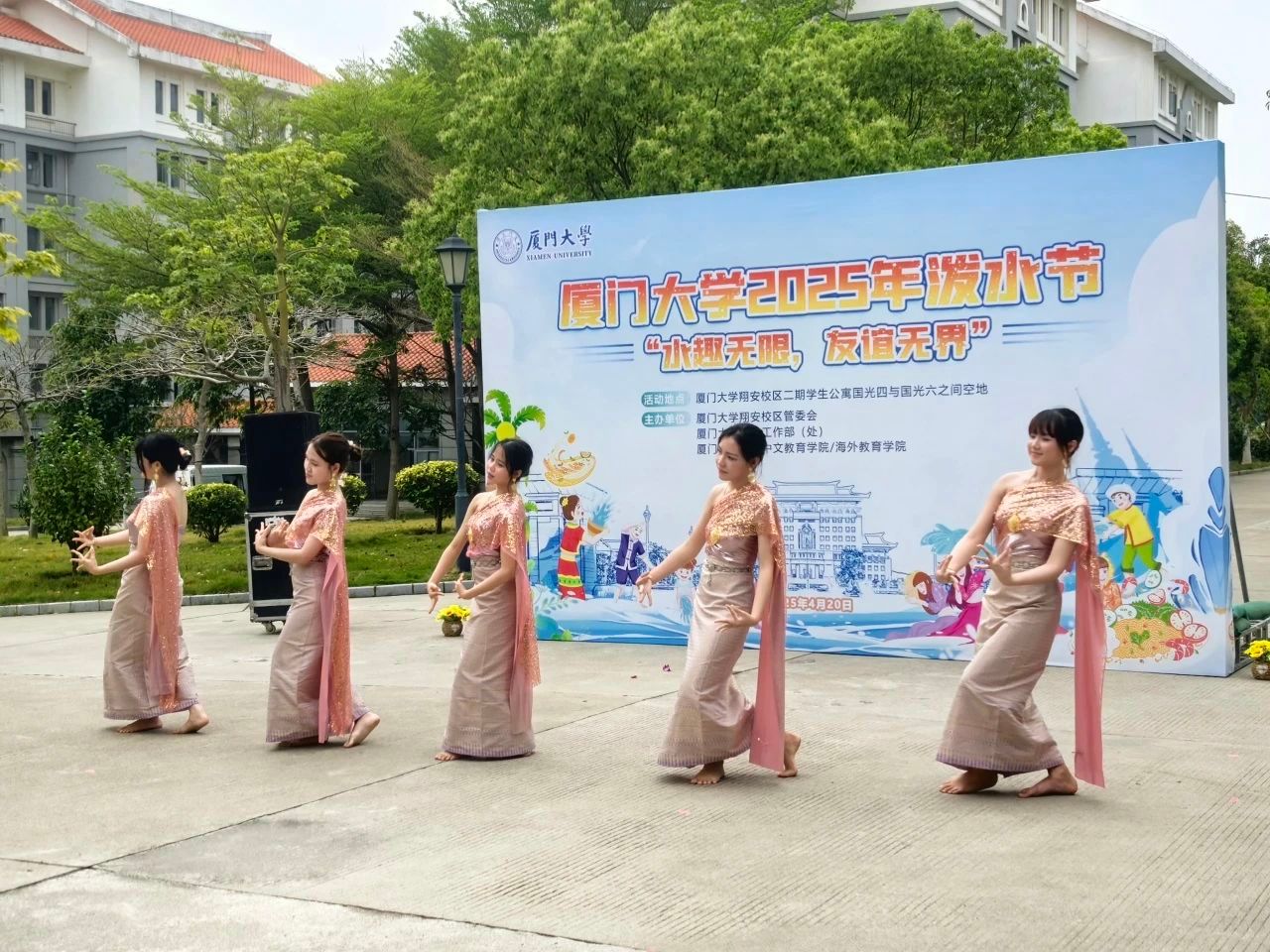 谷雨润泽万物,中文联结四海。4月20日,我院在翔安校区举办国际中文日庆祝活动暨2025年泼水节活动。活动由厦门大学翔安校区管委会、学生工作处、国际中文教育学院/海外教育学院联合主办,吸引了全校500多位中外师生参与,他们在笑声与水花交织的狂欢中,共同感受泼水节的活力脉动与文化交融之美。