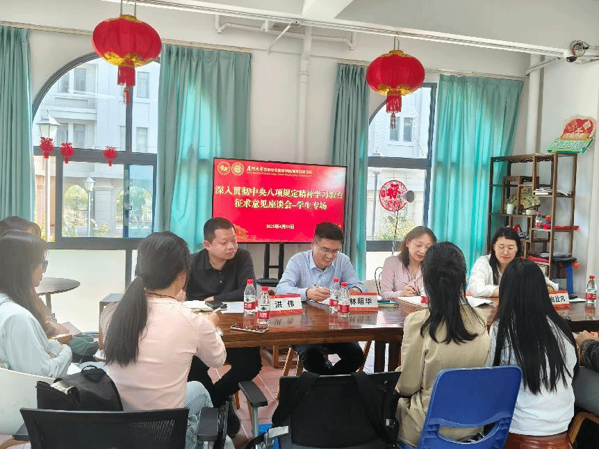 4月14日下午,我院“书记有约”座谈会在厦门大学翔安校区国光2“一站式”学生社区举行。学院党委书记许美霞、党委副书记林明华、办公室主任洪伟、团委书记白沚凡与学院各年级学生代表齐聚一堂,围绕学习生活、学院工作与未来建设等多方面内容展开深入交流。