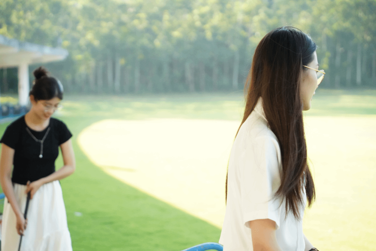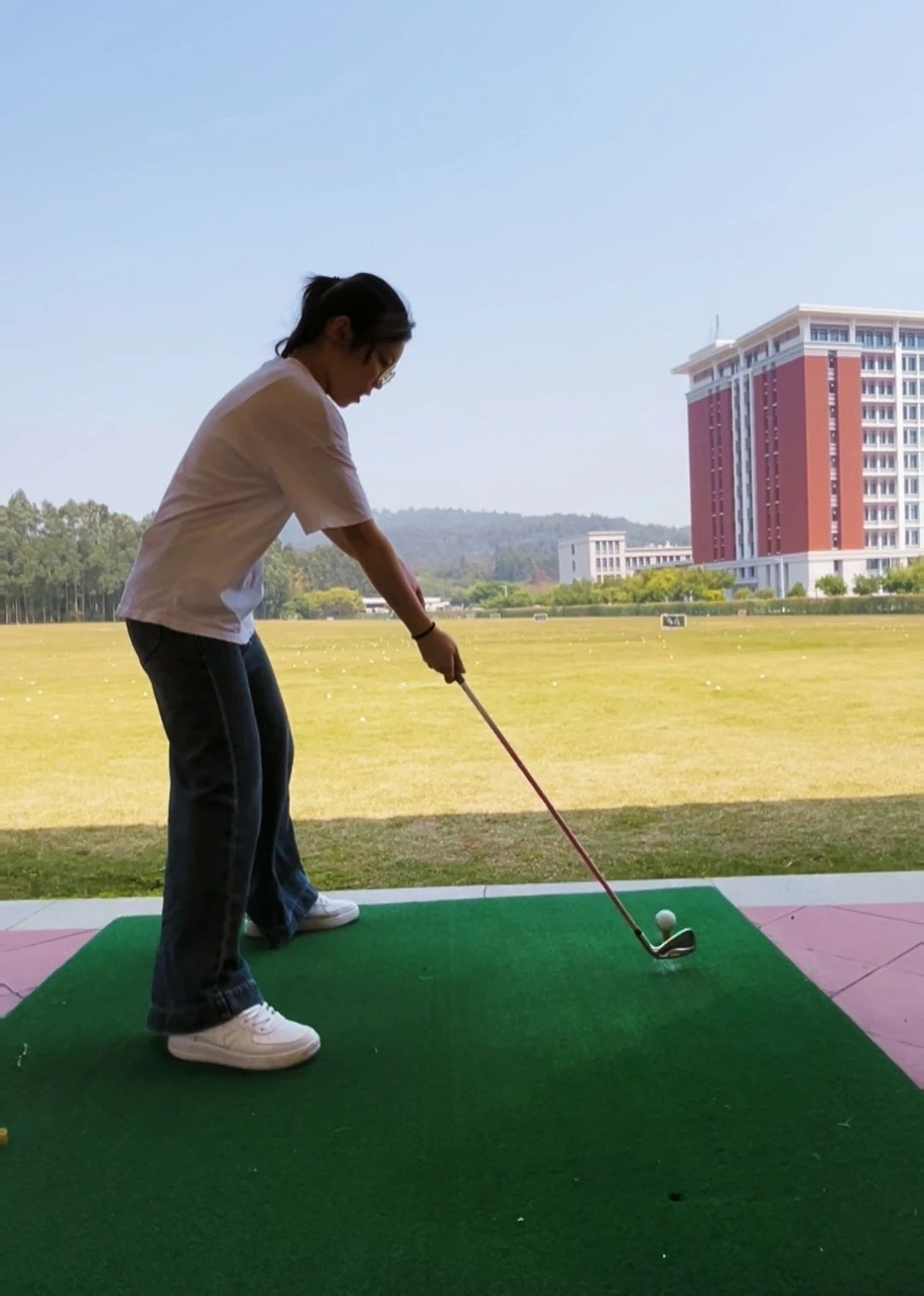在实际操练过程中,同学们分组进行练习,互相交流经验,互相鼓励支持。有的同学主动帮助其他同学纠正动作,分享自己的击球心得,不少同学首次挥杆便成功击球,现场气氛轻松活跃。