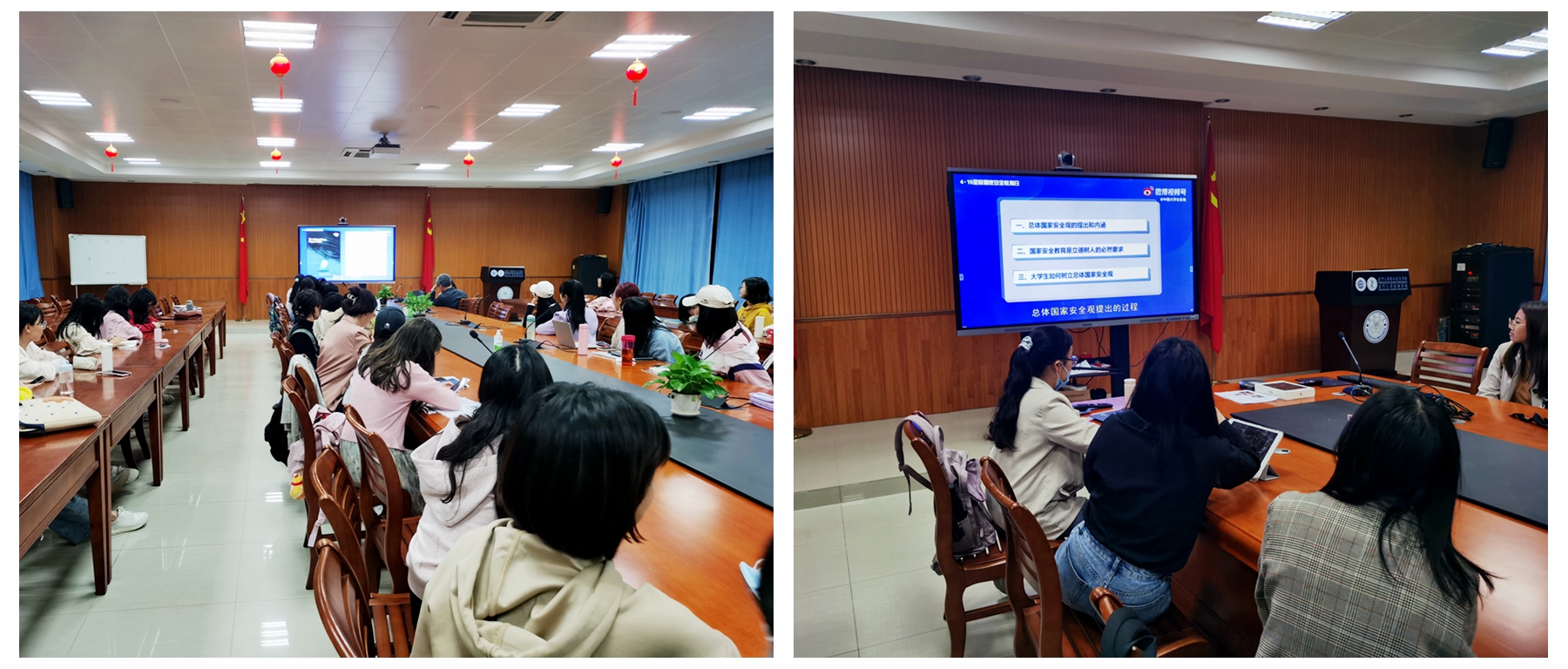 本次公开课从总体国家安全观的提出和内涵、国家安全教育是立德树人的必然要求和大学生如何树立总体国家安全观等多方面展开讲解,观看视频后,同学们积极分享了自己的感悟和收获。