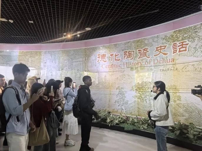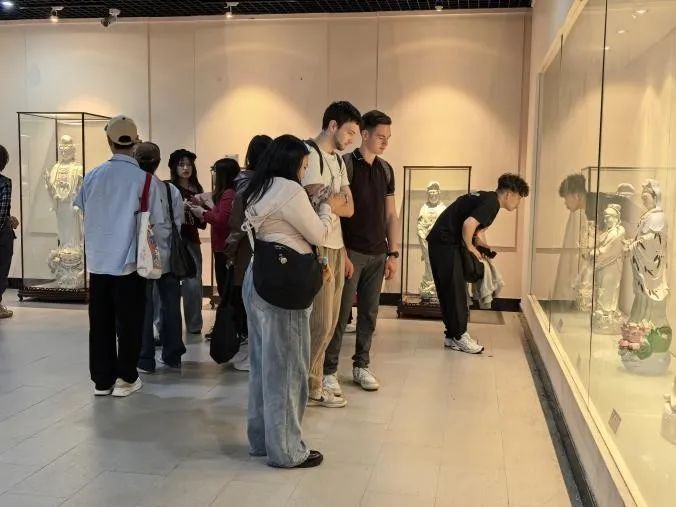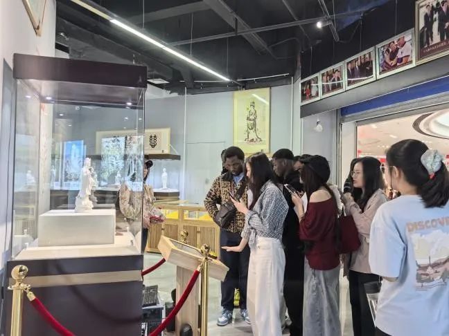 德化陶瓷博物馆作为学院的实践教学基地,是向同学们生动展示中华优秀传统文化和大国工匠精神的窗口。在专业讲解员的引导下,同学们系统观摩了跨越不同历史时期的各类陶瓷精品,深入学习了陶瓷制作的工艺流程,真切领略到陶瓷艺术的深厚底蕴。同学们在参观过程中,不仅被德化瓷器胎质细腻、釉色如玉的工艺之美所震撼,更深刻体会到中华陶瓷文化的博大精深。透过这些精美的瓷器,大家领略到传统工艺的精湛技艺,对瓷器在中外文明互鉴中的独特作用有了更深的理解。活动尾声,留学生代表接受了采访,认为这次陶瓷之旅具有纪念意义,表达了对这场陶瓷文化视觉盛宴的赞美。