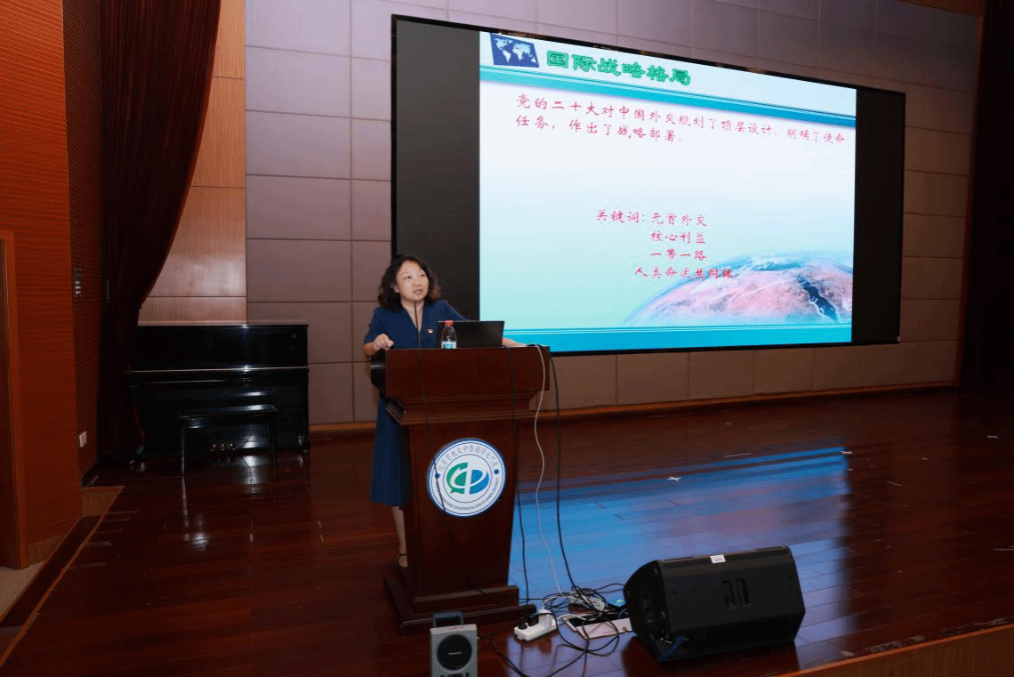 谢素蓉立足地缘政治格局演变,为师生党员带来了一场立意深远的专题党课。她以全球视野剖析中美、俄欧等多极力量在政治、经济、军事、外交等维度的战略博弈,通过梳理国际秩序重构脉络,揭示世界百年未有之大变局加速演进的深层动因,生动展现了地缘政治变迁对全球治理体系的深刻影响。谢素蓉指出,在总体国家安全观指引下,必须深刻把握世界互联互通、休戚与共的本质特征,必须清醒认识到构建人类命运共同体既是应对传统安全威胁与非传统安全挑战交织的必然选择,更是实现持久和平、普遍安全、共同繁荣的治本之道。