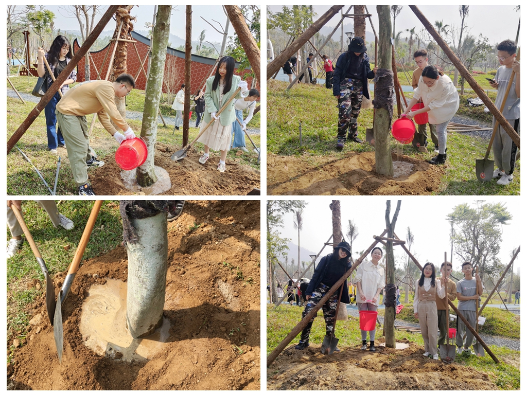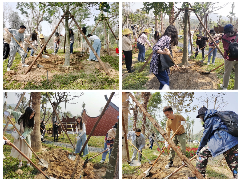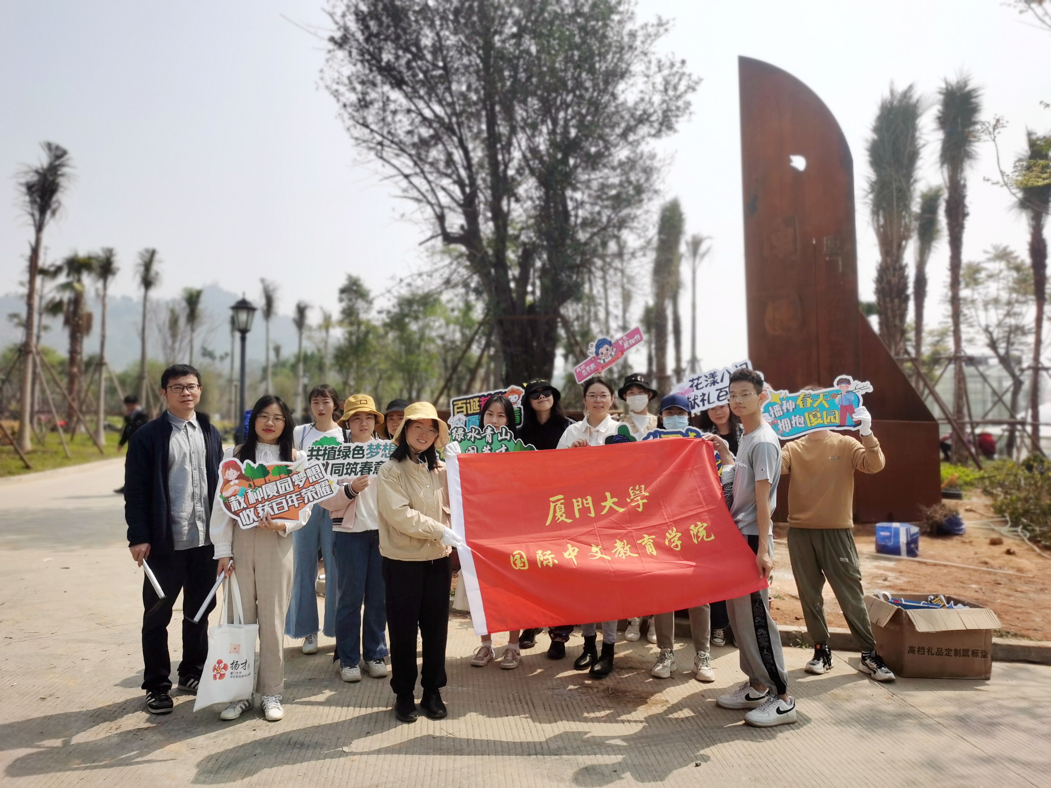 为了切实深入贯彻生态文明理念,传承和发扬学生爱树、植树、护树的传统,充分发挥校区“八闽园”作为厦门大学生态实践教学基地育人功能,在第43个植树节来临之际,国际中文教育学院在校区“八闽园”开展植树和劳动教育实践活动。学院团委书记陈艺新,辅导员关丽文,以及20余名学生志愿者参加了此次活动。