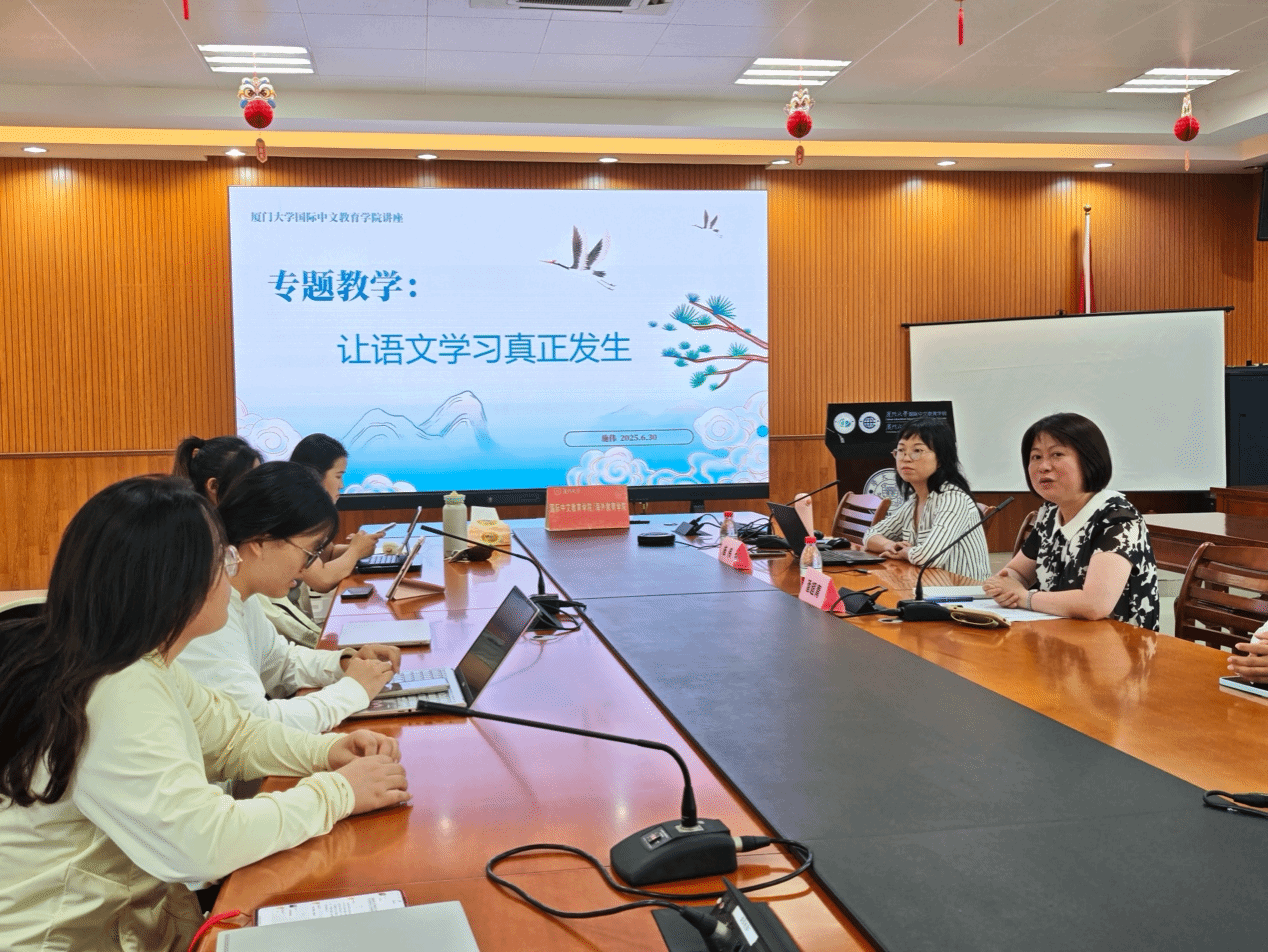 6月30日下午,国际中文教育学院/海外教育学院实习行前指导第二场讲座,邀请到福建省同安第一中学施伟老师,为我院即将赴实习基地的研究生、本科生带来题为《专题教学:让语文学习真正发生》的精彩讲座。学院副院长潘超青主持并介绍了此次讲座的背景与目的。