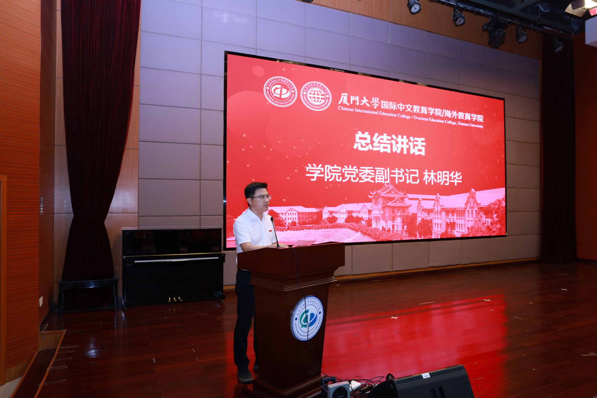 7月10日下午的闭营仪式上,林明华作了总结,以“情谊如诗,恒久绵长”寄语营员,期待大家以厦大“爱国、革命、自强、科学”精神为炬,在国际中文教育领域践行文化自信,永葆初心、知行合一、胸怀天下,用所学知识,讲好真实、立体、全面的中国故事,做文明互鉴的践行者。湖南大学胡淏然同学代表全体营员发言,坦言四天的学习不仅深化了专业认知,更坚定了投身国际中文教育事业的决心。