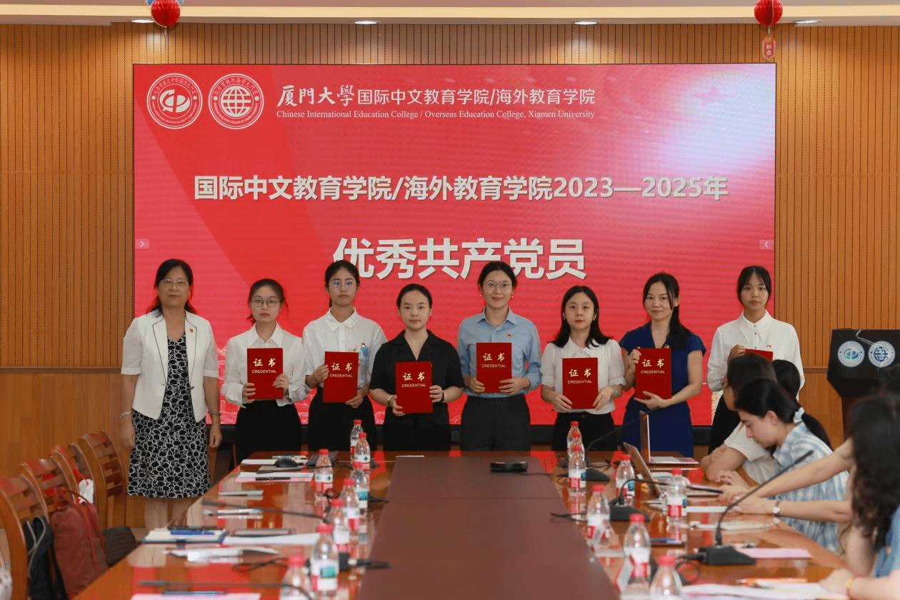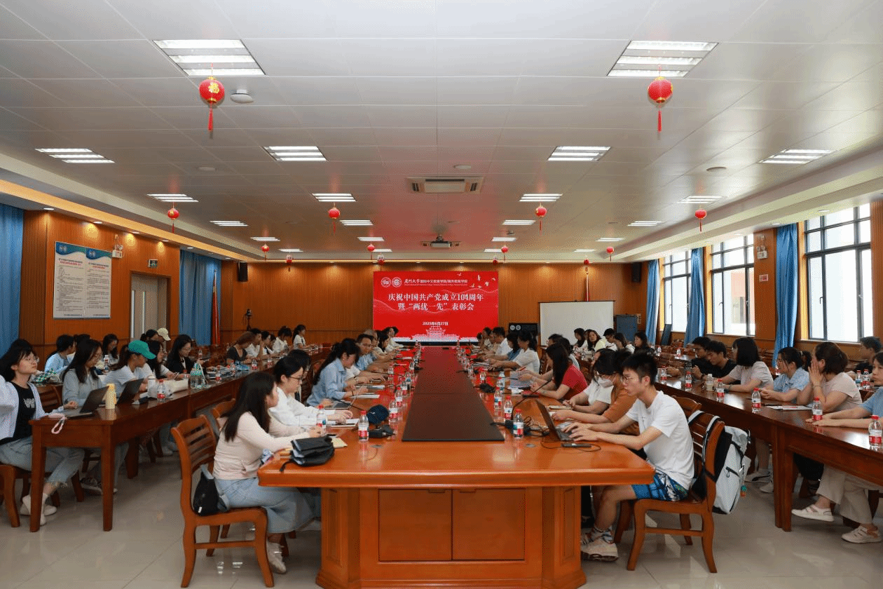 为庆祝中国共产党成立104周年,扎实开展深入贯彻中央八项规定精神学习教育,营造学习先进、崇尚先进、争当先进的良好氛围,6月27日中午,国际中文教育学院/海外教育学院在翔安校区坤銮楼C104会议室召开庆祝中国共产党成立104周年暨“两优一先”表彰会。学院党委委员、全体党支部委员、师生党员、入党积极分子参加。会议由学院党委副书记林明华主持。