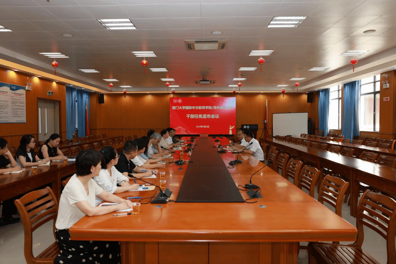 9月3日下午,国际中文教育学院/海外教育学院干部任免宣布会议在翔安校区坤銮楼C104会议室举行。校党委常委、组织部部长黎永强出席会议。国际中文教育学院/海外教育学院领导班子成员、华文系负责人、科级干部和教职工代表参加会议。会议由黎永强主持。