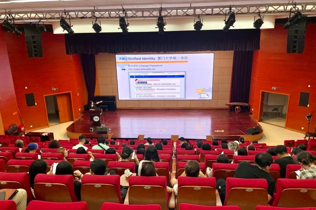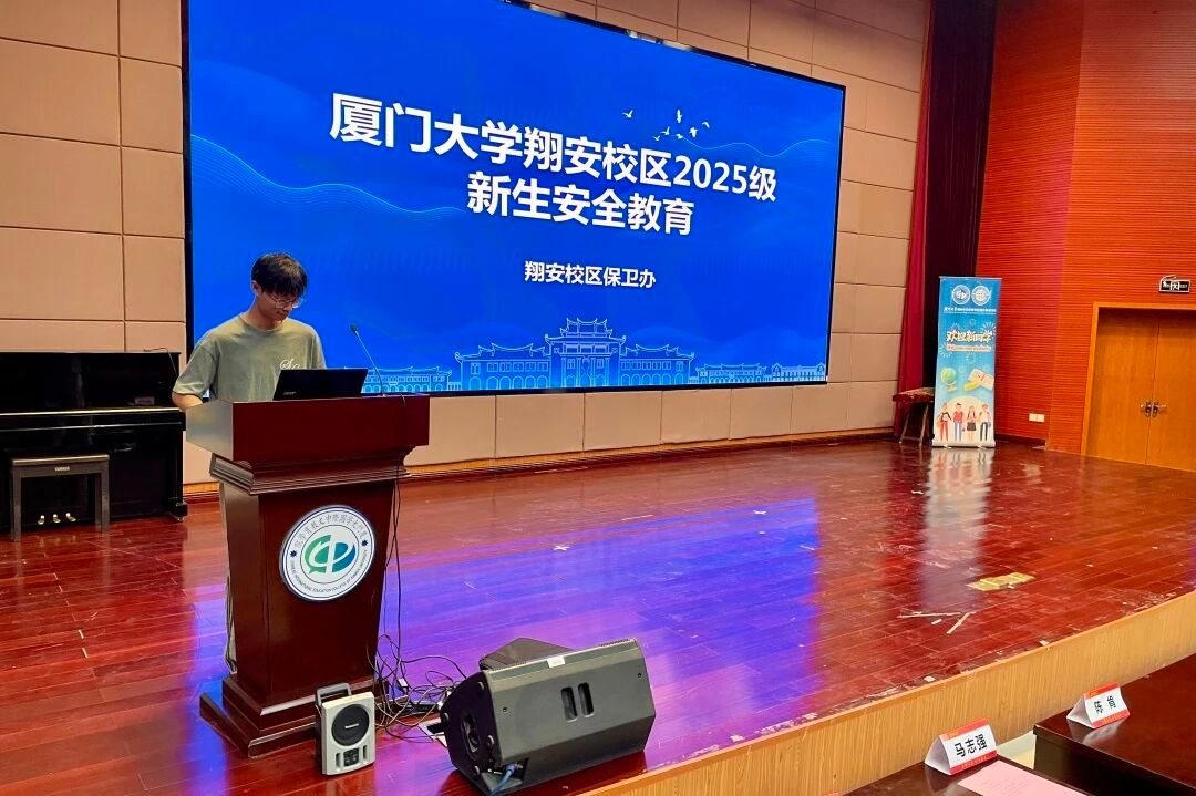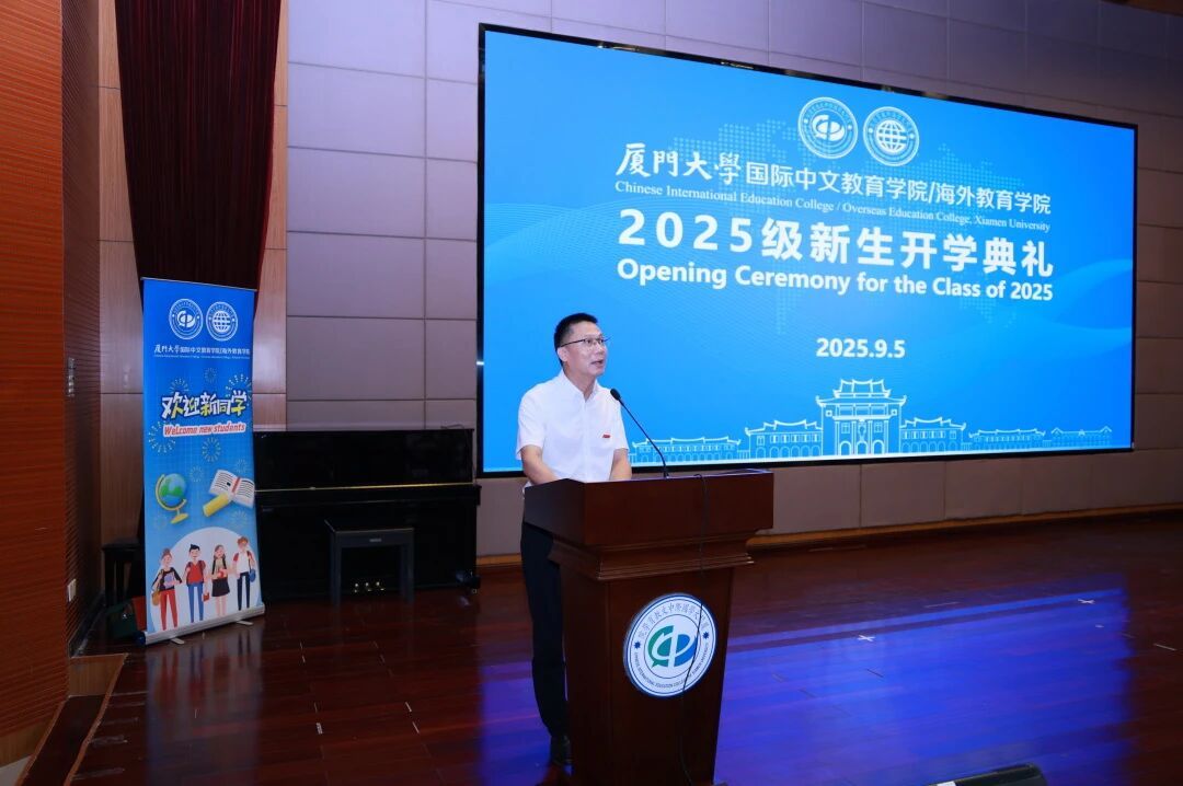 9月5日上午,国际中文教育学院2025级新生开学典礼在翔安校区坤銮楼B102多功能厅举行。学院党委副书记李启忠主持典礼,院长陈志伟在致辞中对新生的到来表示热烈欢迎;党委书记许美霞为新生代表赠书;教师代表陈肯副教授、院友代表马志强、老生代表郝钰佳与安妮先后发言,分别向新生传递殷切期望、送上美好祝愿;新生代表亚伦、沈恩滢与薛楷成随后发言,分享了入学的喜悦与对未来中文学习、跨文化交流的憧憬,表达了踏实求学、不负时光的决心。典礼后,翔安校区保卫办姜立恒老师开展校园安全教育,从交通安全、消防安全、反诈防范、毒品预防等方面介绍校区安全注意事项,并结合案例强调强化校园安全意识的重要性。