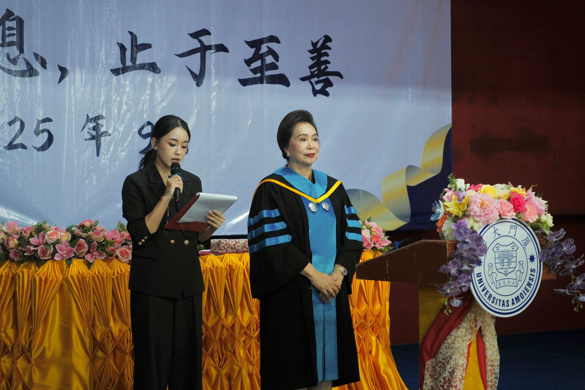 9月25日下午,我校张宗益校长率代表团出席厦门大学国际中文教育学院/海外教育学院远程教育教学点——泰国鹏博冠中文学校2025届毕业典礼及学位授予仪式,鹏博冠中文学校董事会主席马秀美、校长娄建坤,泰国美赛市市长阿塔蓬·昆塔(Mr.Attaphon Kuntha)等嘉宾共同出席仪式。