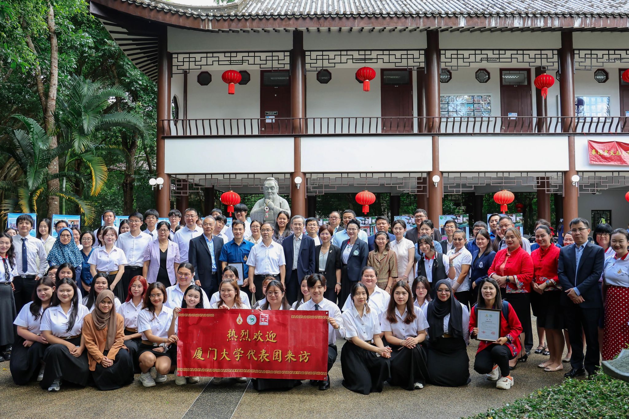 9月25日上午,泰国皇太后大学孔子学院举行首届校友联谊会,此次活动是庆祝皇太后大学孔子院成立20周年的重要活动之一,厦门大学张宗益校长率代表团出席。泰国皇太后大学副校长古龙英、厦门大学泰国校友会主席李文海等嘉宾,泰国皇太后大学孔子学院、汉学院及厦门大学国际中文教育学院远程教育教学点鹏博冠中文学校师生代表等120余人齐聚一堂,共同见证这一欢庆时刻。联谊会由厦门大学国际中文教育学院/海外教育学院院长陈志伟主持。