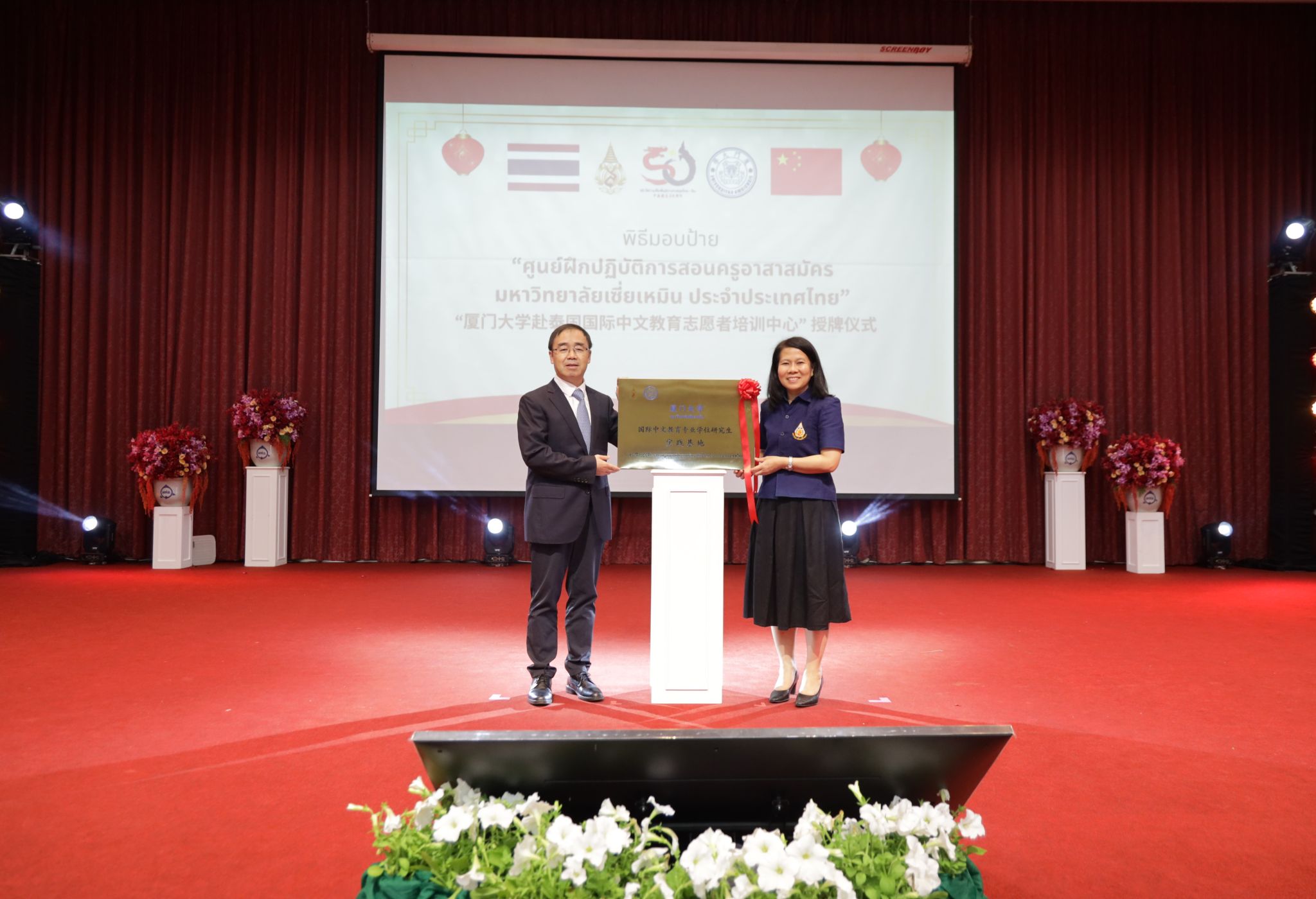 9月26日,在泰国皇太后大学孔子学院成立20周年庆典隆重举行之际,我校张宗益校长率代表团专程赴泰参与系列庆祝活动。皇太后大学孔子学院由厦门大学与泰国皇太后大学合作共建,是泰国第一所迎来20周年院庆的孔子学院。在中泰建交50周年庆典、诗琳通中国语言文化中心奠基25周年暨皇太后大学孔子学院成立20周年庆典上,张宗益与皇太后大学校长马琪玛共同为皇太后大学“厦门大学国际中文教育专业学位研究生实践基地”揭牌,标志着两校在国际中文教育领域的合作进入新阶段。此次授牌也标志着皇太后大学孔院被增设为厦门大学校级专业学位示范基地。