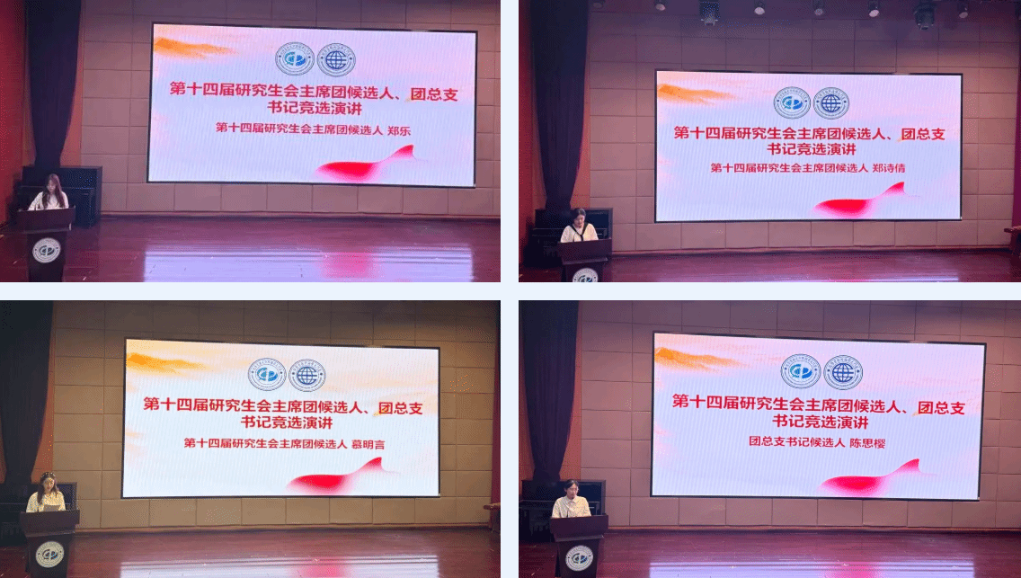 随后,大会进入第十四届研究生会主席团、团总支书记候选人竞选演讲环节。经与会代表无记名投票,大会选举郑乐、郑诗倩为学院第十四届研究生会主席团成员,陈思樱为研究生团总支书记。