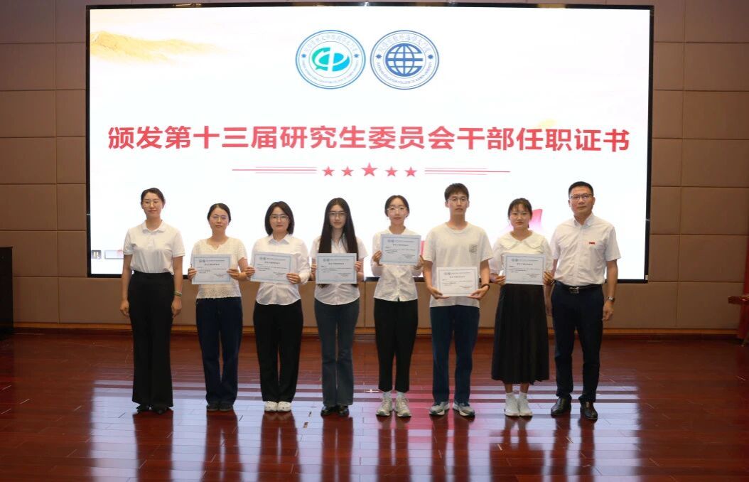 在热烈的掌声中,李启忠、白沚凡共同为国际中文教育学院/海外教育学院第十三届研究生会成员代表颁发了任职证书。