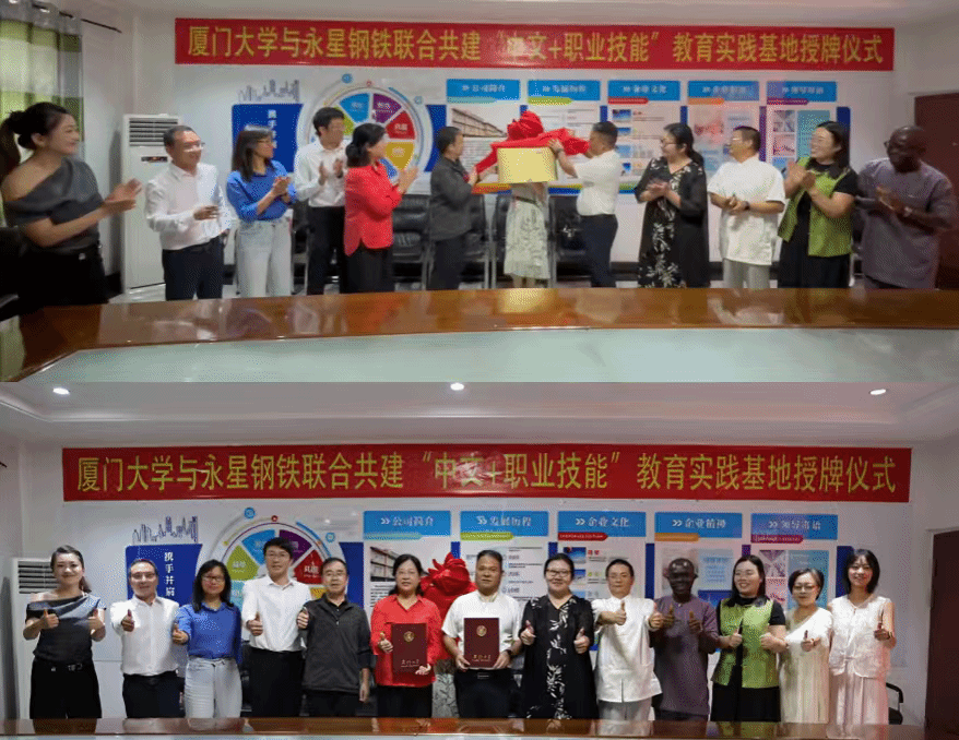 10月25日,张宗益一行访问了尼日利亚永星钢铁有限公司(下称“永星钢铁”),永星钢铁总经理张象海对代表团的到访表示热烈欢迎,他指出永星钢铁在尼发展受益于中尼两国政策与人才支持,而韦大孔院培养的中文人才,帮助在尼企业有效破解了跨文化沟通和本地化人才短缺等难题,为中资企业扎根尼日利亚、融入当地市场提供了重要支撑。张宗益校长对永星钢铁长期以来对韦大孔院的支持表示衷心感谢,他回顾了校主陈嘉庚先生以实业家身份创办厦门大学以及学校以兴学报国为目的的历史传统,指出学校始终坚持“阐扬世界文化”的使命担当,此次校企合作的深入推进,不仅是中尼教育交流与人才培养的进一步拓展,更是福建籍侨胞在非洲传承陈嘉庚先生“实业救国、教育兴邦”精神的实践。当天,张宗益还见证了厦门大学国际中文教育学院与永星钢铁公司续签“中文+职业技能”战略合作框架协议,并和张象海共同为“厦门大学‘中文+职业技能’教育实践基地”授牌,中国驻拉各斯总领馆总领事严宇清等出席上述活动。