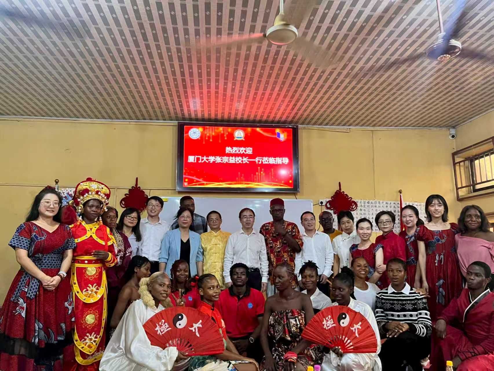 10月24日,张宗益校长一行参观韦大孔院,并观看了孔院学生们的中文学习成果汇报演出,学生们流利的中文表达和热烈的现场氛围给他留下了深刻印象。张宗益肯定韦大孔院所取得的成绩,对孔院全体教职员工在艰苦条件下坚守岗位、无私奉献给予高度赞赏。他特别指出,孔院教师们用知识与爱心点亮了非洲学生的梦想,为促进中尼文明互鉴与民心相通作出了积极贡献。同时,他勉励同学们不仅要做语言的学习者,更要做中尼文化交流的“民间使者”,以语言为桥梁,促进中尼两国民心相通、务实合作。