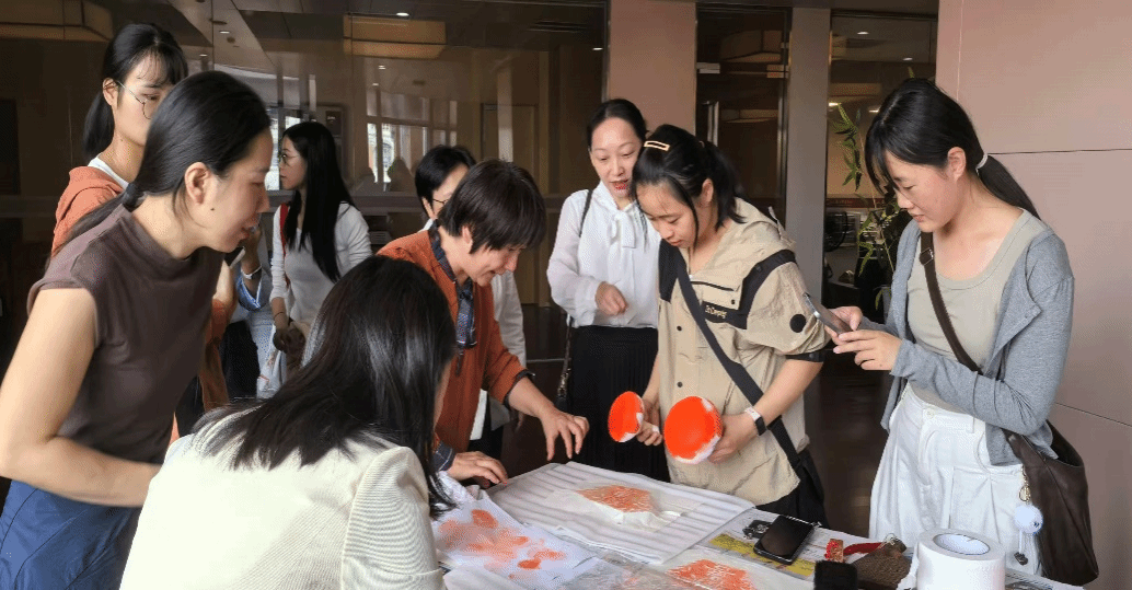 在参观古籍文献馆时,师生党员们亲手体验了拓印技艺这一宝贵的非物质文化遗产项目。通过洒水叠纸、拍打上色、取纸晾晒等环节,大家不仅沉浸式感受到了传统工艺的独特魅力,还各自收获了独一无二的拓印作品,在动手实践中深化了对非物质文化遗产的理解与学习。