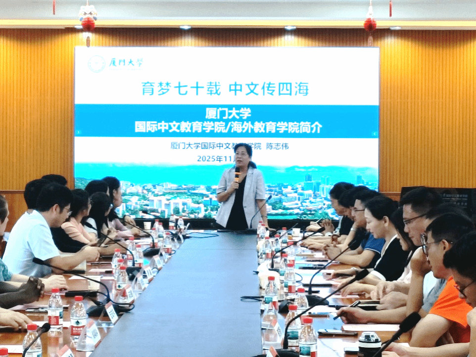 许美霞总结讲话,她表示院友是学院最宝贵的财富,是学院发展最坚实、最可靠的后盾。无论岁月流转、行至何方,院友们永远都是厦门大学国际中文教育学院/海外教育学院的重要一员,学院永远是大家温暖的精神家园和心灵港湾。她深情寄语:“凤凰花开的路口,我们曾携手同行、共赴理想;七十载华诞之际,盼我们再度重相逢、共话情深。学院将始终牵挂每一位院友,也热切期待与全体院友一道,传承厦大精神,延续育人初心,让国际中文教育的种子在全球生根发芽、枝繁叶茂,让中外文化交流的纽带更加坚韧牢固、源远流长。”