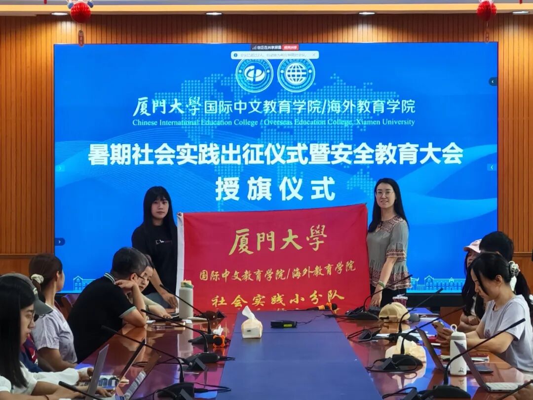 6月25日下午,国际中文教育学院/海外教育学院2025年暑期社会实践出征仪式暨安全教育大会在厦门大学翔安校区坤銮楼C104会议室举行。华文系主任朱宇、副主任郭建花、教师张灵芝、辅导员林炯等社会实践带队教师代表,全体实践队员参加会议。仪式由学院团委书记白沚凡主持。