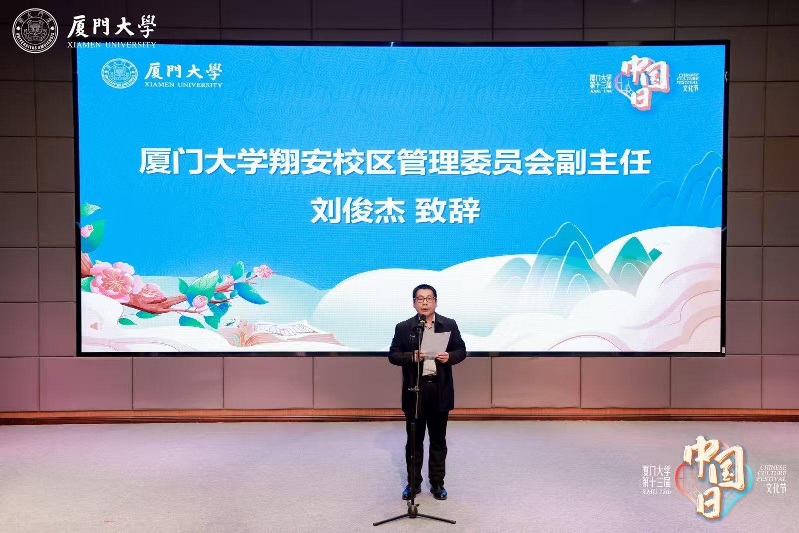 厦门大学翔安校区管委会副主任刘俊杰发表致辞,恭迎五洲宾朋,致谢中外师生与工作人员。他表示,校主陈嘉庚先生以“教育为立国之本”创办厦大,确立“阐扬世界文化”的办学宗旨。百余年来,厦大人始终肩负着“胸怀祖国、放眼世界”的担当。习近平总书记在厦大建校100周年贺信中也高度肯定我校为“中华文化海外传播作出了积极贡献”。刘俊杰也提到,“中国日”以“文化互通、心灵相通”为核,搭建多元交流平台,让中外文化同台绽放,诠释文明互鉴之真谛。愿外国学子借此走进中国,让厦园成为“各美其美,美美与共”的文化交融摇篮,为构建人类命运共同体注入青春力量!