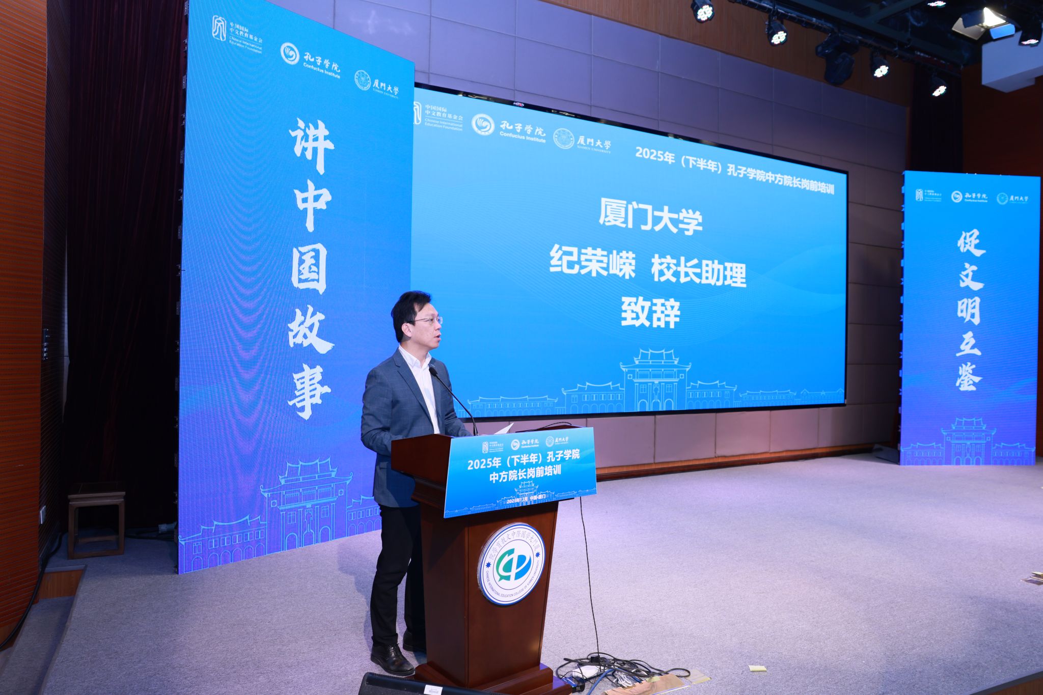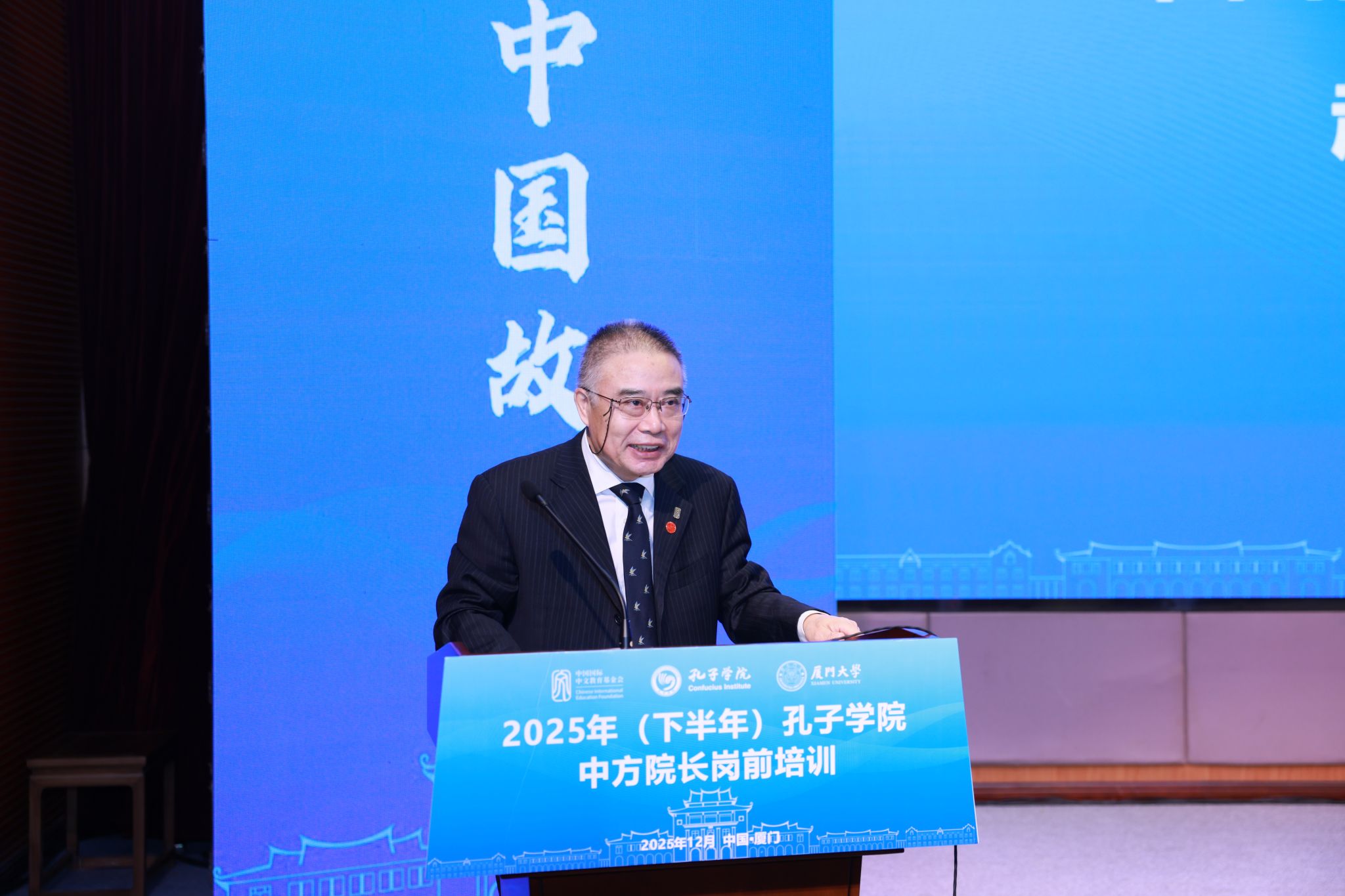 12月12日,由中国国际中文教育基金会主办、厦门大学承办的2025年(下半年)孔子学院中方院长岗前培训结业仪式在我校翔安校区举行。中国国际中文教育基金会秘书长赵灵山,我校校长助理纪荣嵘出席结业仪式并致辞。