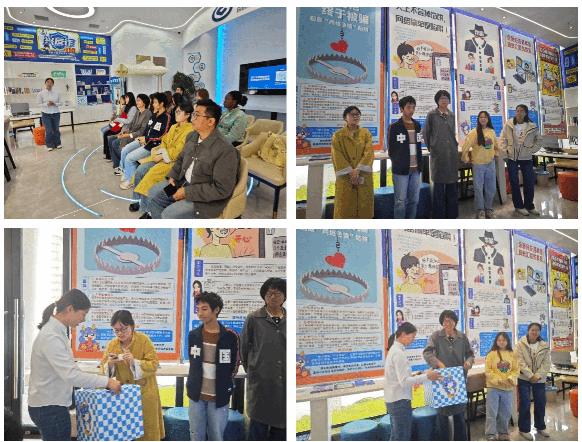 活动最后,学员们集体观看反诈宣传短片,并参加线上反诈知识测试。同学们认真完成测试,前三名完成和取得满分的同学还参与了现场抽奖。通过短片观看与现场小测验,同学们进一步巩固了防骗知识,掌握了诸如“不轻信、不转账、多核实”等实用应对原则。