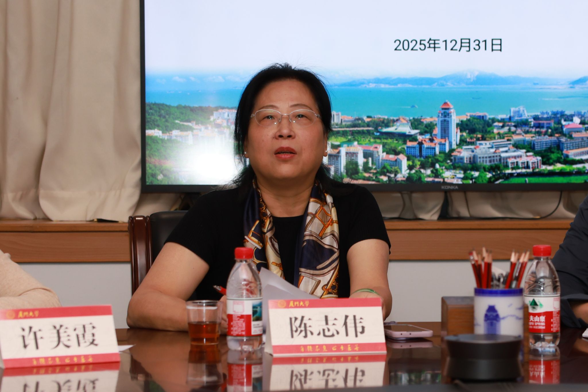 2025年12月31日下午,厦门大学共建孔子学院中方院长2025年度例会在思明校区颂恩楼顺利召开,我校副校长史大林参会并致辞。国际合作与交流处处长兼海外办学事务办公室主任钟威、党的建设工作办公室主任兼组织部副部长葛郝锐、人事处副处长柯自聪、招生与考试办公室副主任钟杰、国际中文教育学院/海外教育学院党政班子成员、共建孔子学院中方院长、候任院长等参会,会议由国际中文教育学院/海外教育学院院长陈志伟主持。