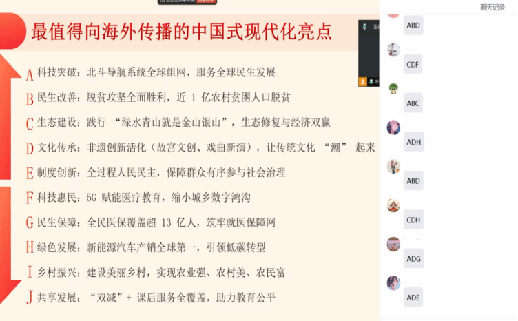 2023级研究生则聚焦专业发展的挑战与机遇,将自律教育的规则意识融入网络言行规范、学术诚信坚守等方面,以“公约共建”思维明确专业成长边界。同时,结合自强教育的“砺能融通”要求,确定了编写“生活化中文”教材、制作多语言文化短视频、参与海外志愿教学等实践路径,将个人职业发展与国家教育对外开放战略紧密结合。