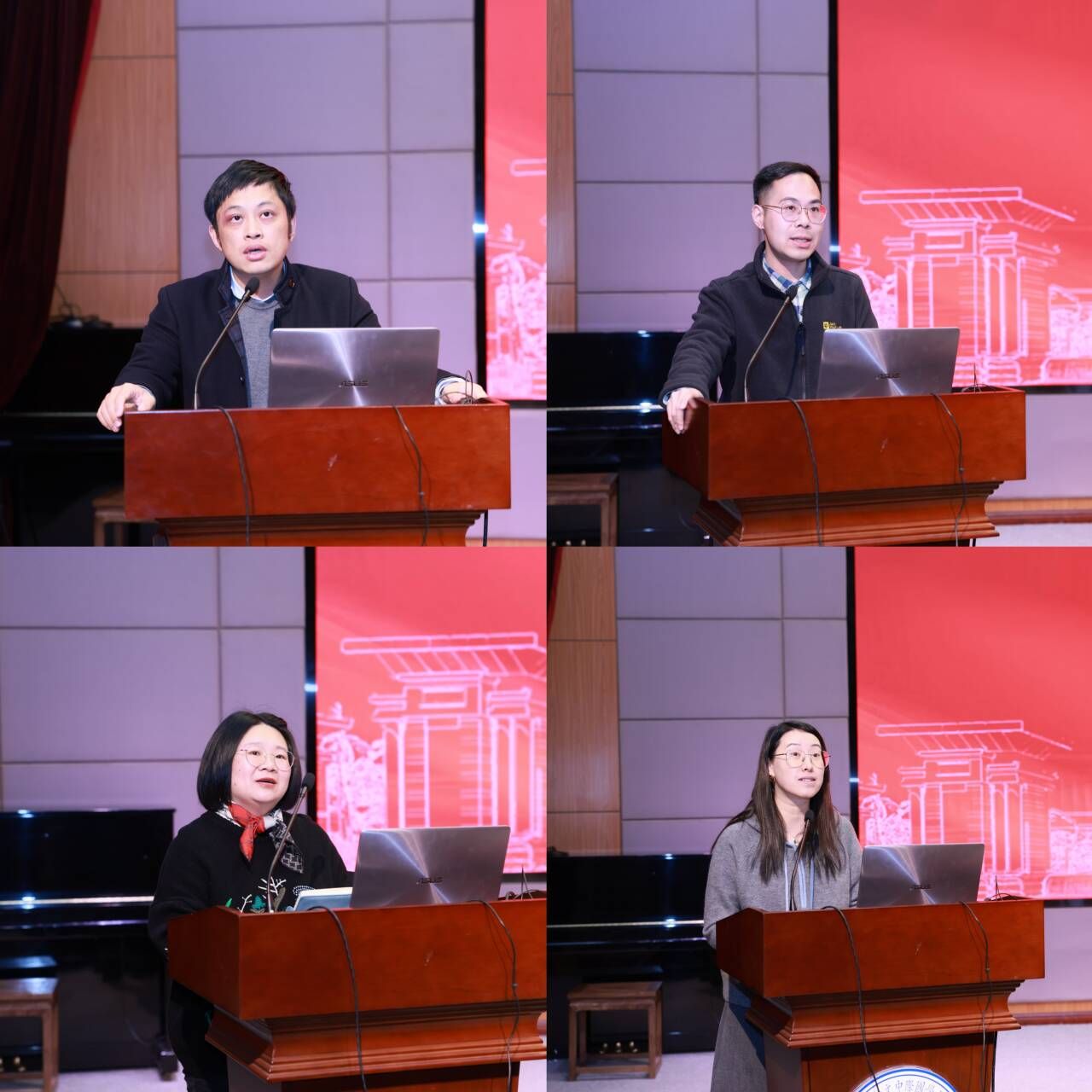 小组讨论结束后,洪镔、陈肯、胡婷、白沚凡四位老师分别代表各小组上台,汇报了讨论情况和主要观点,言简意赅又精彩迭出。
