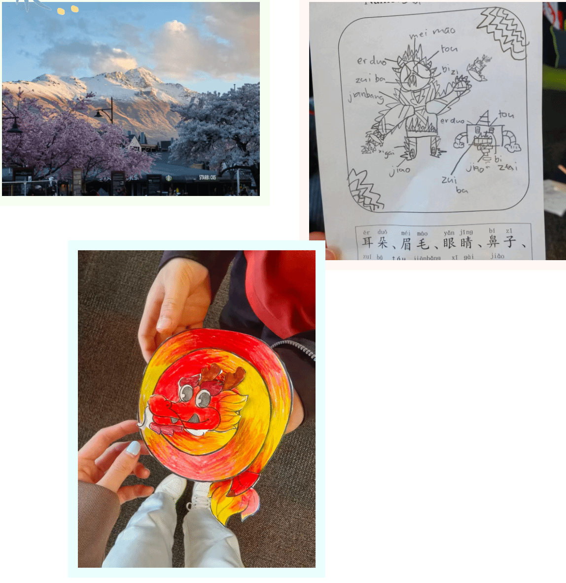 当惠灵顿的海风最后一次轻拂过我的脸庞,我意识到,这段以中文为舟、以文化为帆的旅程,即将靠岸。回望在新西兰担任国际中文教师志愿者的三百多个日夜,那些在课堂内外闪烁的瞬间,如同散落在时光长河中的贝壳,每一枚都蕴藏着潮汐的故事、阳光的温度,以及两种不同文明轻轻碰撞的鸣响。 初抵新西兰,当我第一次站在全然不同的教育场景中,面对孩子们清澈而陌生的目光时,我知道,真正的挑战才刚刚开始——如何让中文课堂真正“活”起来,让那些横平竖直的字符,成为可触摸、可感受的体验。我发现,无论是华裔还是非华裔学生,纯粹的语言知识讲解都难以持久吸引他们的注意力。于是,我尝试将语言教学编织进一个个具体的文化情境与生活主题中。从最初稚嫩的“你好,我叫……”,到运动、水果、动物等一个个鲜活的主题,课堂渐渐变成一座流动的工坊。我们一同扎纸风筝、编织绣球、绘制脸谱;端午节时,每个孩子都设计出一条属于自己的龙,吉祥、力量不再只是抽象的词语。我努力让每一个汉字、每一个句型都与可感知、可体验的文化内涵或生活实际相连。当看到学生们兴致勃勃地争论中国新年与毛利新年的异同,或者自豪地展示自己剪出的融合圣诞元素的窗花时,我深深体会到,语言学习的生命力,正蕴藏在这种真实的文化交流与创造性的理解之中。