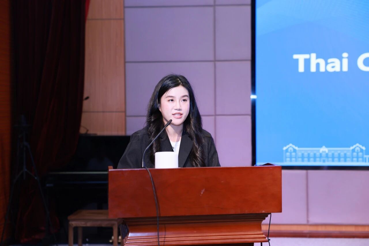来自泰国皇太后大学的交流生张美君,代表全体泰国班新生发言,对厦门大学及“乃元基金”提供的宝贵学习机会与奖学金支持表示衷心感谢。她表示,在为期四个月的学习旅程中,将与同学们一同严格要求自己、勤奋笃学,积极参与校园活动,充分展现泰国学生积极向上、朝气蓬勃的精神风貌,立志成为搭建泰文化交流与合作的坚实桥梁。