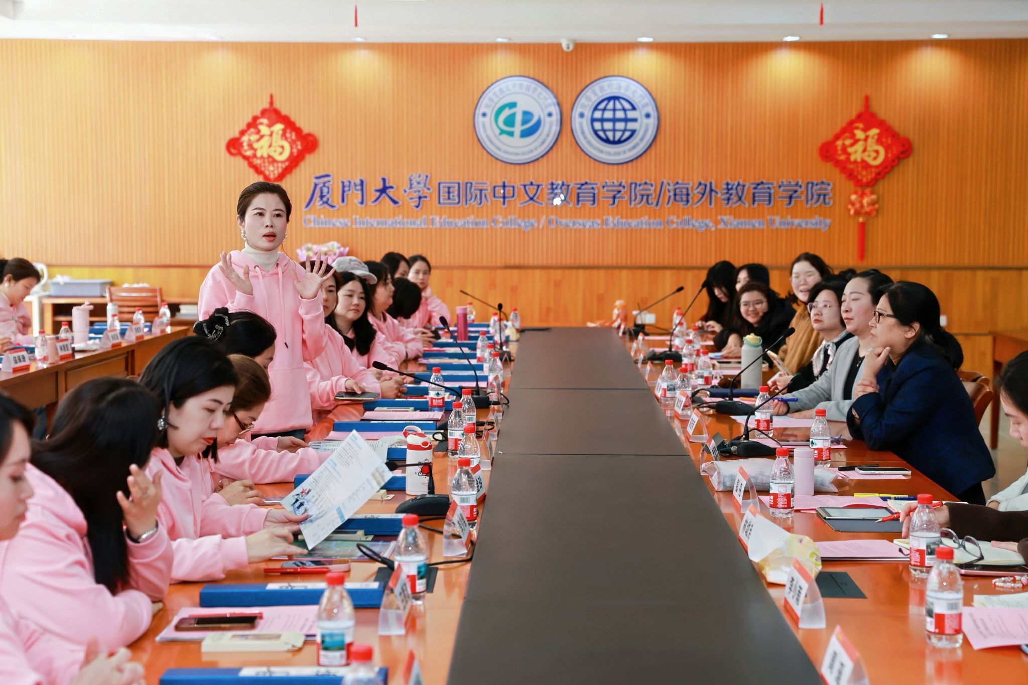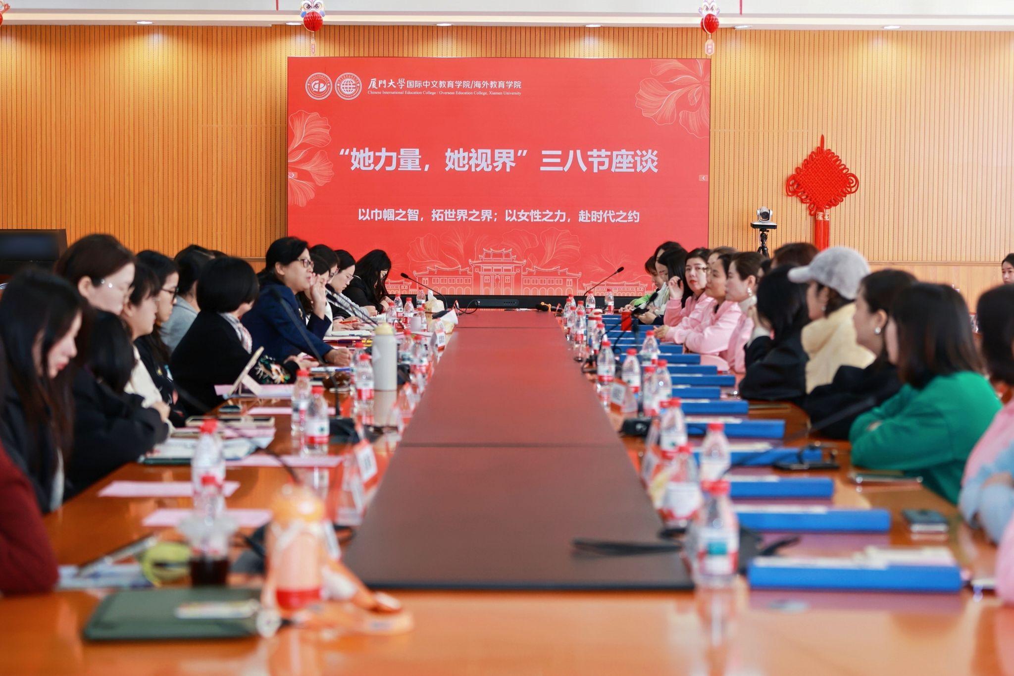 3月11日,福建闽商巾帼志专委会访问团一行到访厦门大学国际中文教育学院/海外教育学院,与学院师生开展“她力量,她视界”三八节主题座谈,并进行文化交流及校园参观活动。学院院长陈志伟、华文系副主任孟繁杰教授、港澳台先修部主任林幼芳、语合中心女教师及国际学生代表共同出席活动。座谈会由学院教师陈文倩主持。