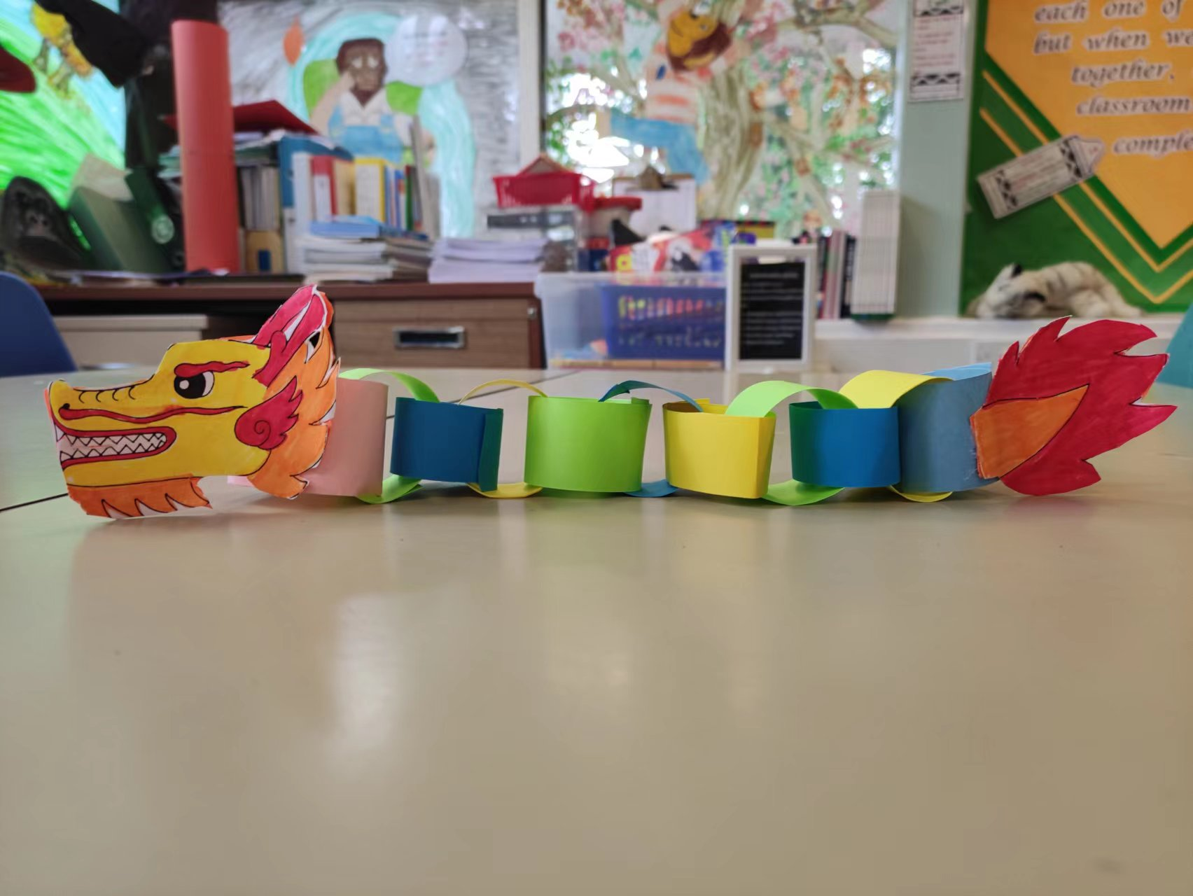 在6月28号的工坊中,谈老师选取了学生极为感兴趣的“龙”进行了专题介绍。通过谈老师的讲解,学生们了解到了龙是中华民族的象征,是高贵尊荣的代表。而在观看了一场壮观浩大的舞龙表演视频后,大家充分发挥自己的创造力,制作出了一条条活灵活现的舞龙。