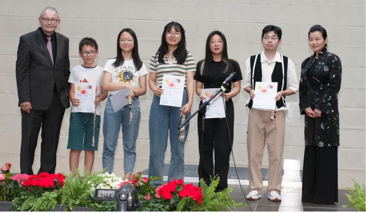 2021年10月至11月,特里尔孔院先后在萨尔兰、卢森堡和特里尔举办了“中国孩子的书香世界”当代儿童绘本展和阅读工作坊并在此基础上于12月开展了阅读竞赛与成果评比。两位评委老师对近40份参赛作品进行了专业评分,从而产生不同奖项。为表彰同学们的优秀表现,特里尔孔院为所有参赛者精心制作了证书并特地向厦门大学申请了丰富的学习用品作为奖励。学生们上台领奖时,脸上都绽放出了灿烂的笑容,随后上台的优秀指导教师和给予活动大力支持的卢森堡语言文化中心和萨尔彩虹中文学校更是收获了观众最热情的掌声。