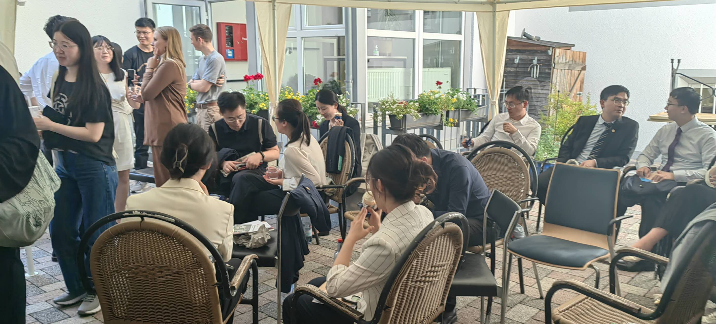 特里尔市政府秘书长克里斯蒂安•米伦先生 (Chiristian Millen)和特里尔市国际关系官员林莉莎女士(Elisa Limbacher)与清华大学优秀研究生暑期海外实践支队师生在市政厅外草坪合影