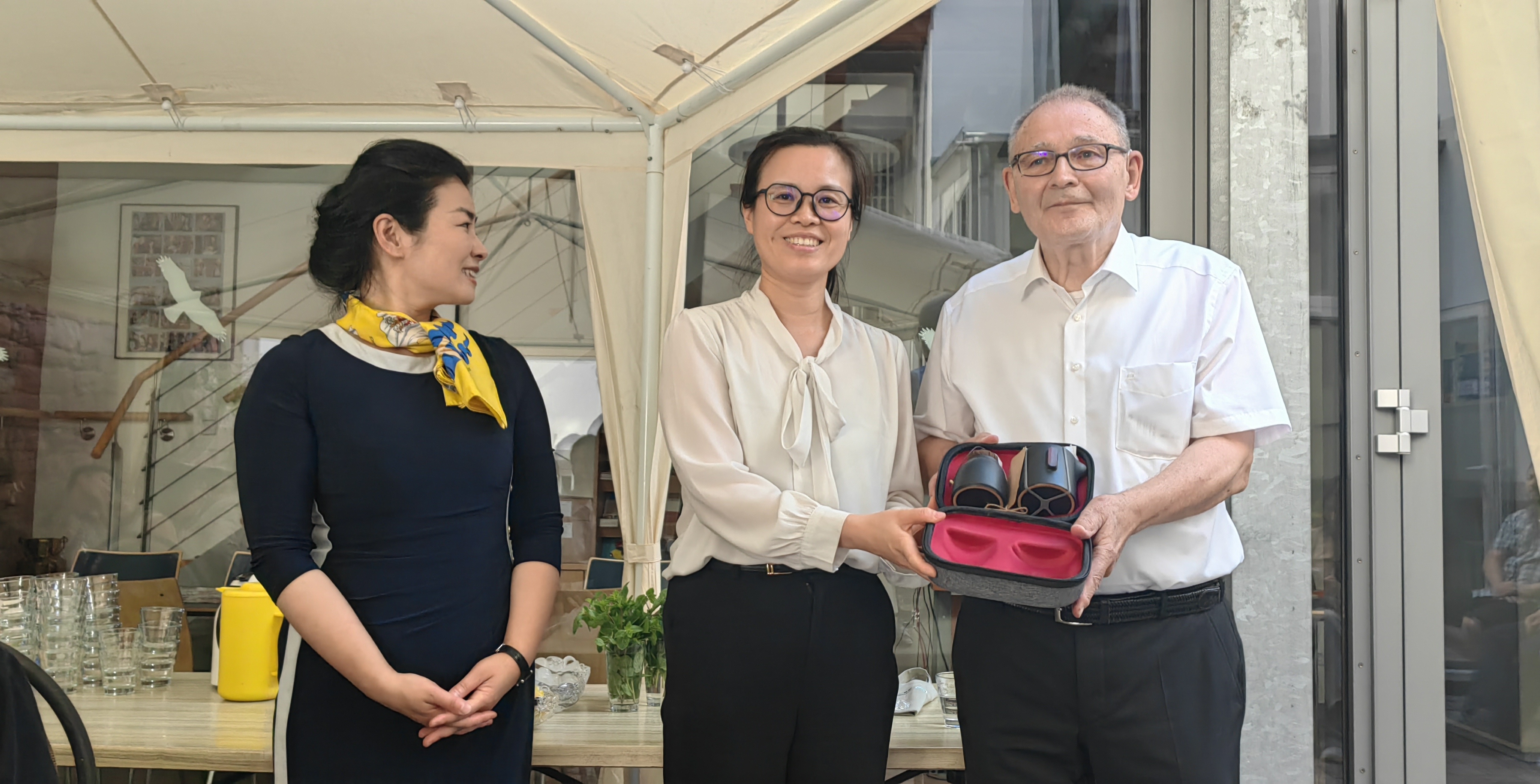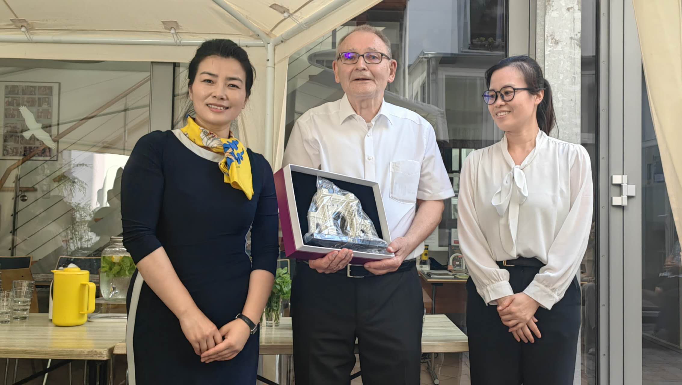 清华大学优秀研究生暑期海外实践支队领队老师与特里尔孔子学院理事长彼得迪策先生互赠纪念品