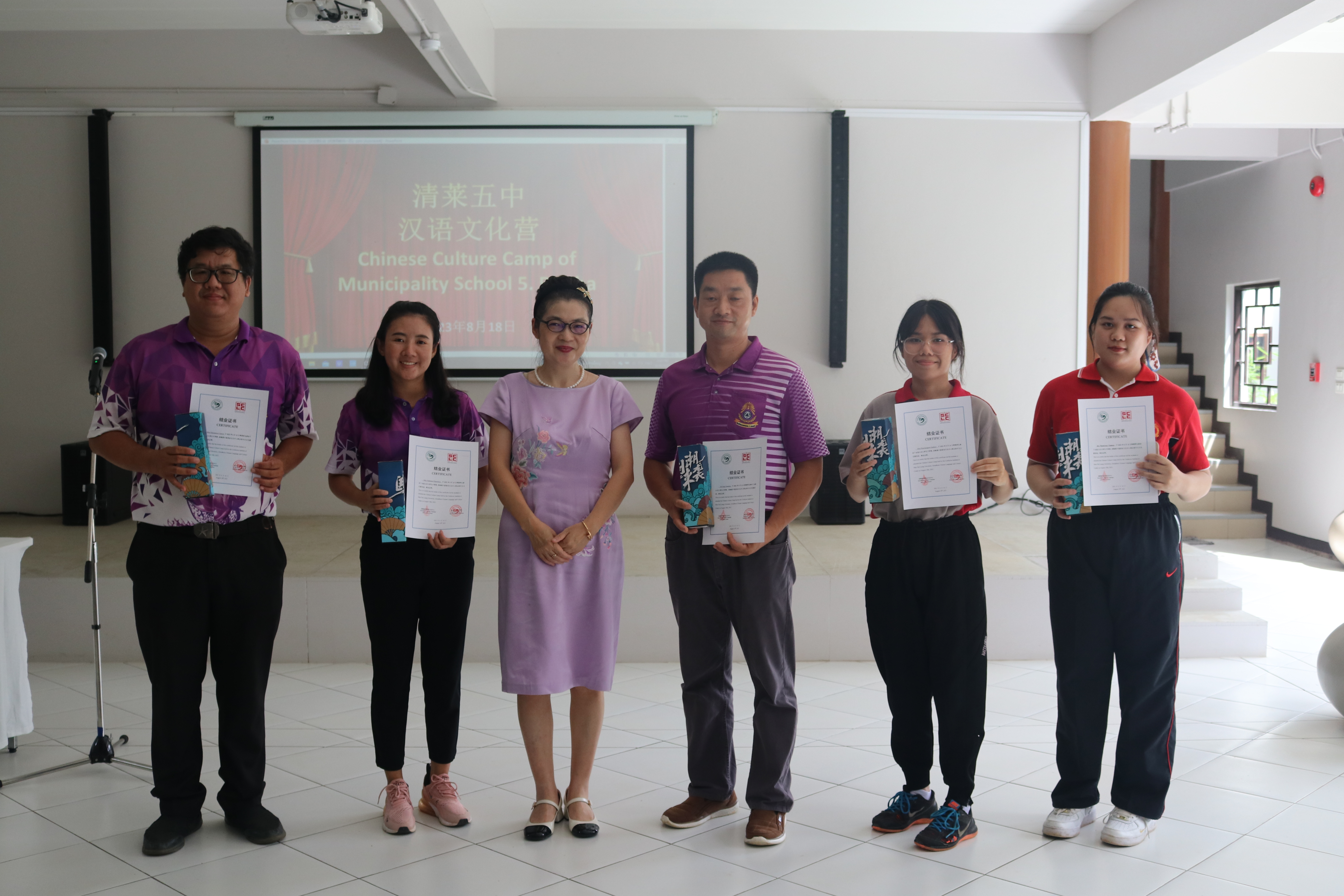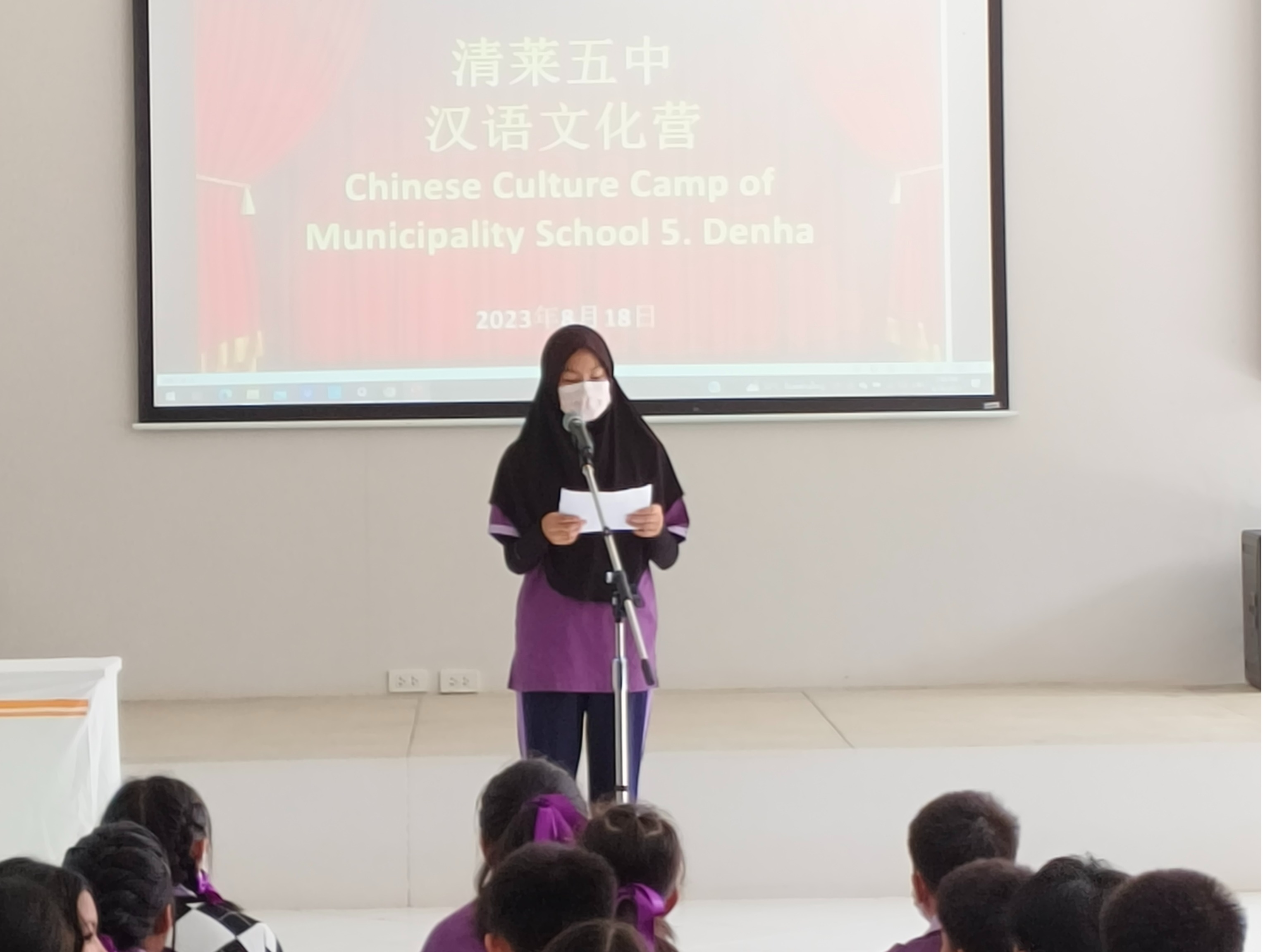 在闭幕式上,清莱五中的教师代表林金加和学生代表马秋鸿上台发言,通过一天紧凑而充实的文化营体验活动,营员们都学到了很多东西,收获满满,并且激发起了他们探索汉语和中华文化魅力的动力,他们也会把今天的体验成果带回学校与其他同学分享,希望以后还有机会来参加孔院的其他活动。