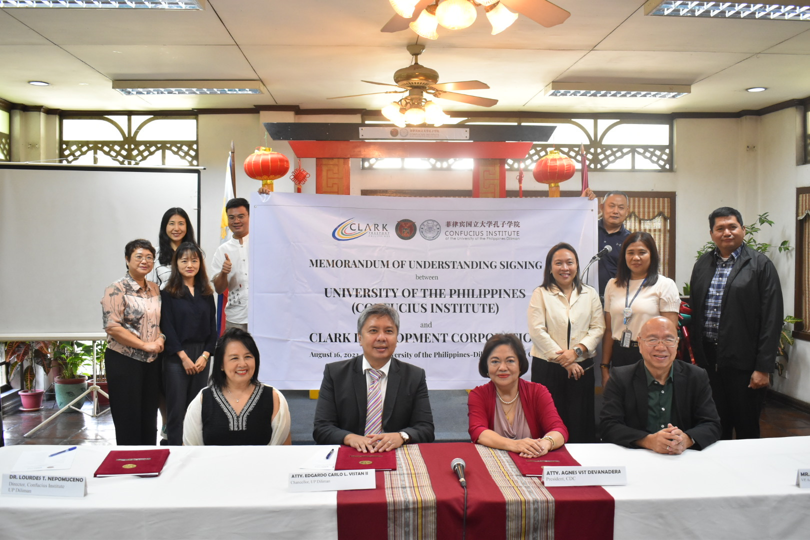 当地时间8月16日下午,菲律宾大学孔子学院与菲律宾克拉克发展局合作备忘录签约仪式在菲大“和平之家”签署。菲律宾大学迪利曼分校校长Edgardo Carlo L. Vistan II、菲大孔院外方院长Dr. Lourdes Tanhueco Nepomuceno、克拉克发展局主席Atty.Agnes VST Devanadera女士、克拉克发展局行政与财务总监Jose Miguel R.de la Rosa先生签署了双方合作协议。克拉克发展局工作人员与菲大孔院老师共同见证了签约仪式。